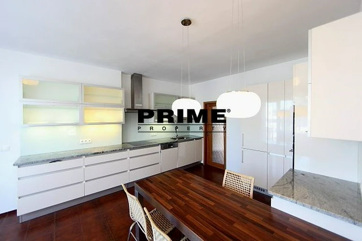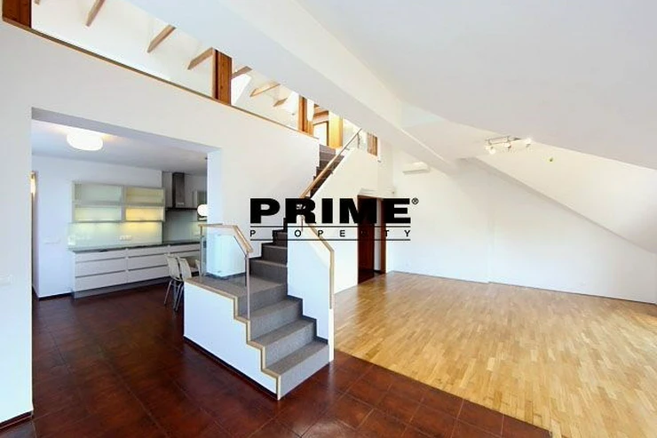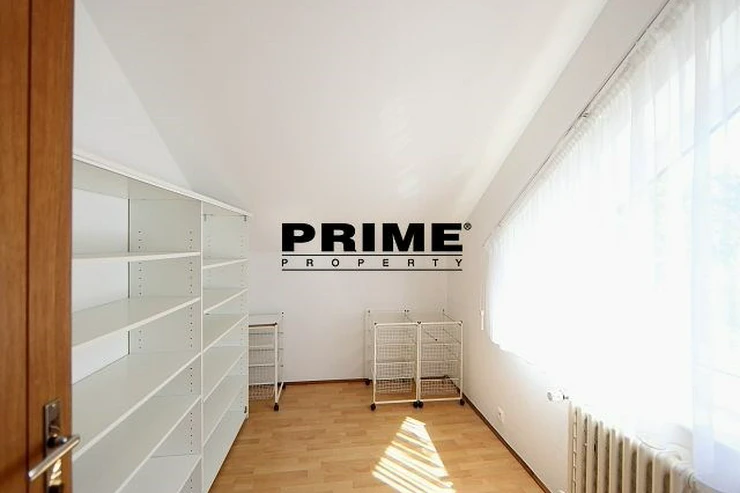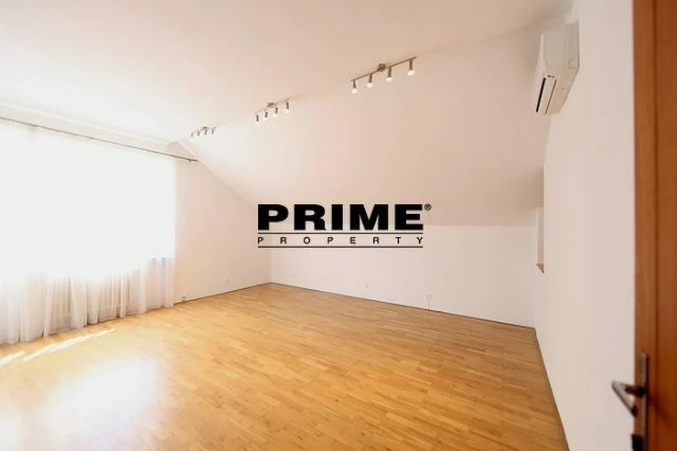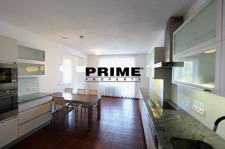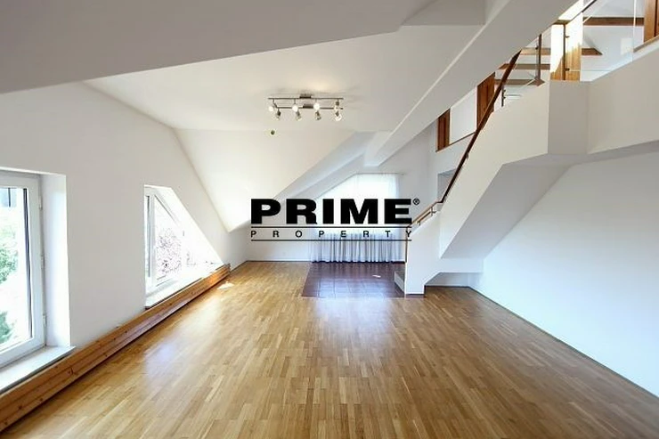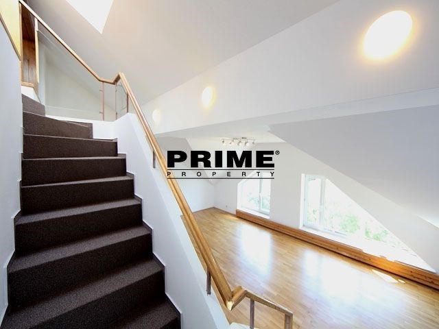 Spacious, air conditioned, 4 bedroom (+ study), 2 bathroom, unfurnished duplex apartment for rent, 6+1, 293m2, with a 10m2 terrace, a garage and a large shared garden. The apartment is situated on the 1st and 2nd (attic) floors of a large villa (the villa has 3 units in total). The property is located in a green, residential area on the boundary line of Hodkovičky and Braník, very close to a bus stop (30 minutes by public transport to the city center), 2 minutes´ drive to Novodvorská shopping mall, 10 minutes´ drive by car to the Prague British International School in Prague 4 (the Kamýk and Libuš campuses) and 15 minutes´ drive to the city center. Tennis courts, a golf course, a beach volleyball court, cycling and jogging paths are nearby.