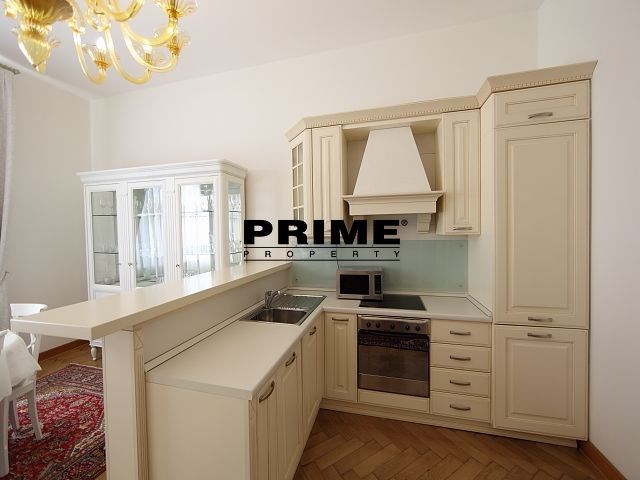 Renovated, 1 bedroom, 1 bathroom, fully furnished apartment for rent, 2+1, 79m2, situated on the 4th floor of a completely renovated apartment building with a lift (the lift stops on mezzanine floors). The building is located in a quiet street, in the downtown area of Prague 1, only 2 minutes´ walk to a tram stop, Náměstí Republiky metro station on yellow line "B" and Palladium shopping mall with a supermarket, 10 minutes´ walk to Wenceslas Square and Old Town Square, close to shops, cafés, bars and restaurants.