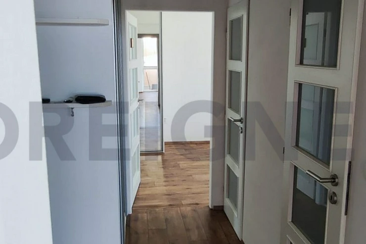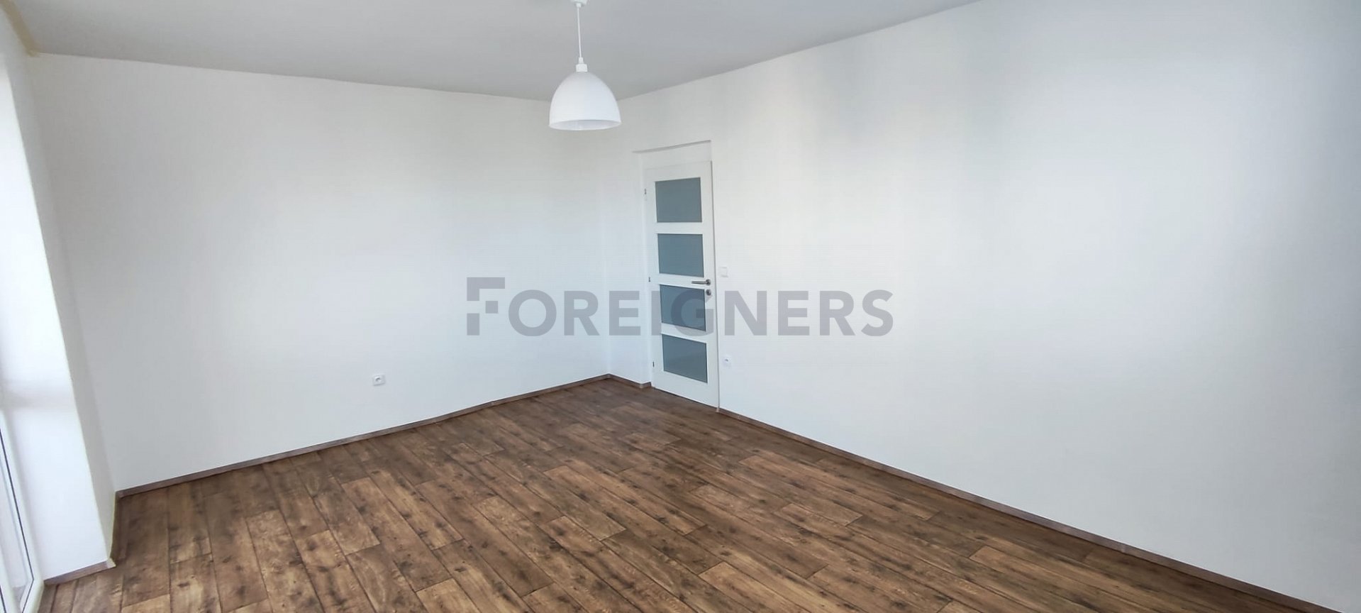 On the right side, you enter the living room, which has access to a 3,5 sq m² balcony, and then into a separate, fully equipped kitchen. From the hallway, you also enter a separate bedroom with a built-in wardrobe on the left side.