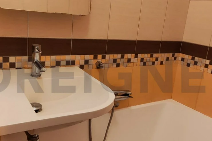 Upon entering the apartment, you step into the main hallway. On the left side of the hallway, there is a built-in storage wardrobe. Directly opposite the entrance is a separate toilet, followed by a standalone bathroom equipped with a bathtub.