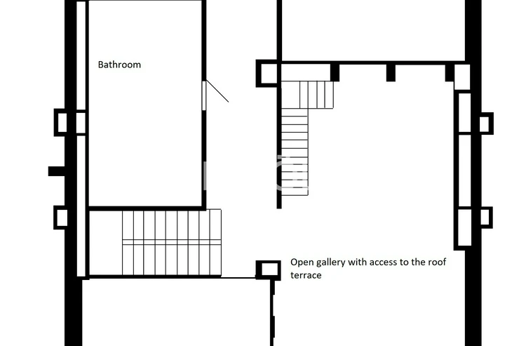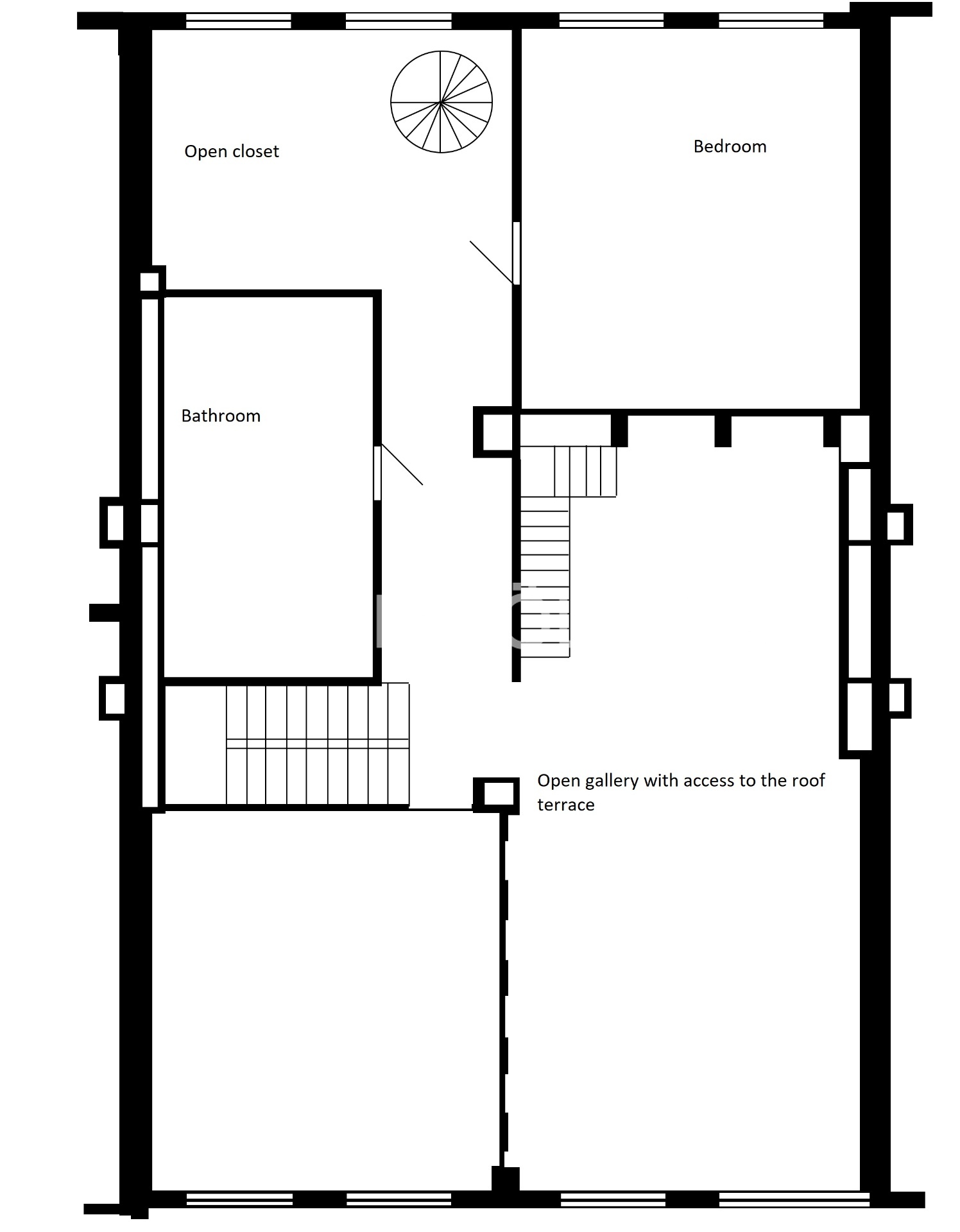 The roof terrace is accessible from the gallery via a spiral stairs.