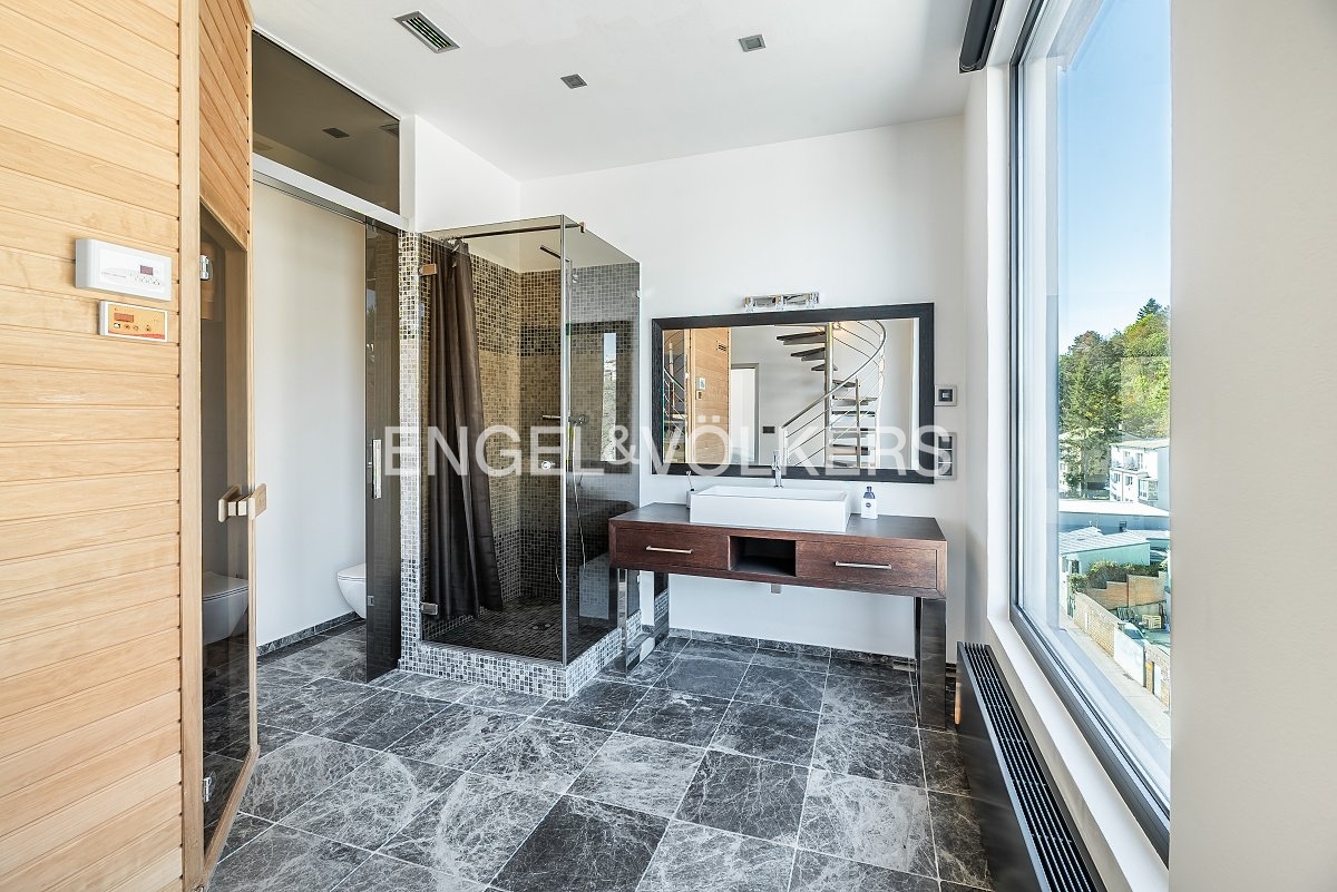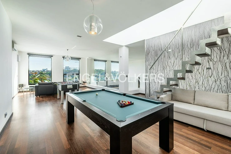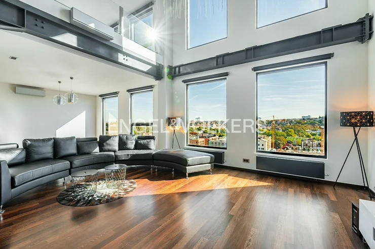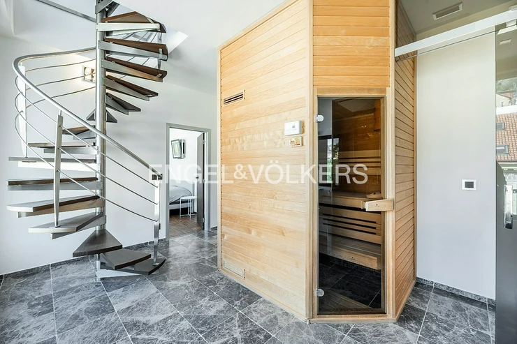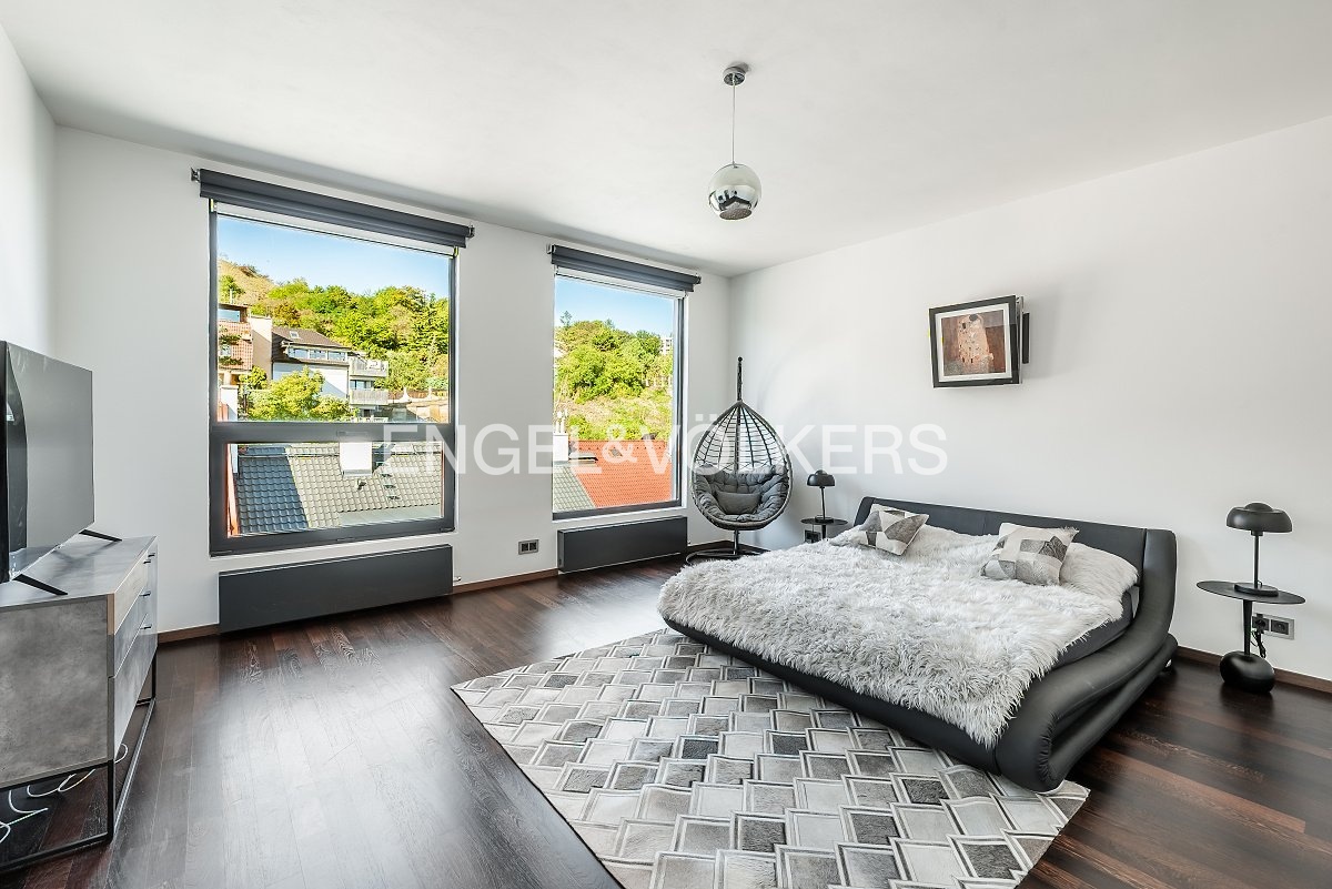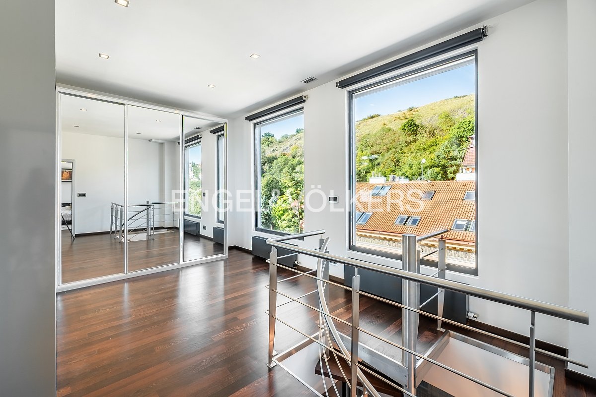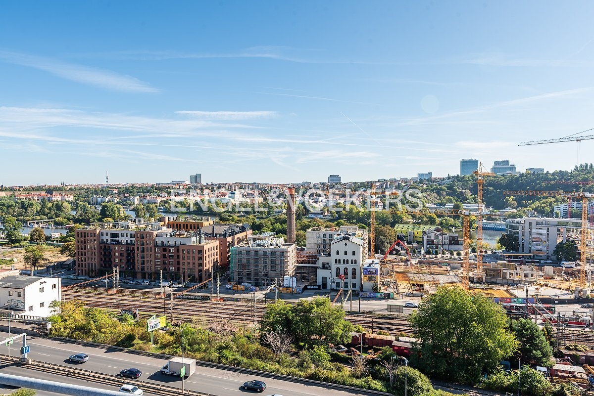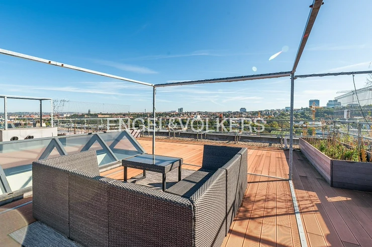 Luxury loft duplex on the 5th - 6th floor with a roof terrace and panoramic views of the Vltava valley, Vyšehrad, Dívčí Hrady and Prague Castle. The loft is located in an industrial building and is situated close to the commercial centre Anděl, near the quiet surroundings of the Prokopské údolí valley.