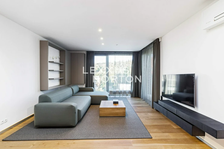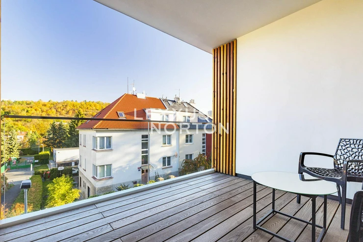 We offer a timeless modern furnished 1 bedroom apartment for rent of 67 sqm with a loggia (9 sqm) on the floor 2 of a residential building in a sought-after quiet location of Prague 4 - Branik, not far from the Vltava River, with complete amenities and nature in the vicinity.It features an entrance hall, a living room with a comfortable sofa set, an equipped kitchenette, and access to a loggia (9 sqm). The apartment also offers a cozy bedroom with access to the loggia, a spacious walk-in closet, and a modern bathroom (shower and toilet). The apartment includes a cellar and a garage parking space.The apartment includes kitchen appliances (stove, oven, refrigerator, freezer, dishwasher, microwave oven), washing machine, dryer, television, sofa set, coffee table, bed, built-in wardrobes, outdoor seating on the loggia. The place to live is close to the banks of the River Vltava. The peaceful, pleasant offers good transport infrastructure - bus and tram strop Dvorce. In the neighbourhood you can also find Penny supermarket, many other shops, restaurants, coffee shops and the Arkady Pankrac Shopping Centre. Those interested in sports can make use of the nearby Yellow Spa, swimming pool, outdoor swimming pool, nature monuments, etc.Total service charge monthly 8 000,- CZK + electricity.An interested client is aware of the need to pay a commission totalling one month’s rent plus VAT.If you are unable to view the property in person, we also offer you a video tour from the comfort of your home in real time via Messenger, WhatsApp and other communication platforms.