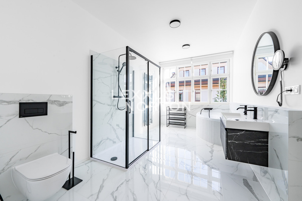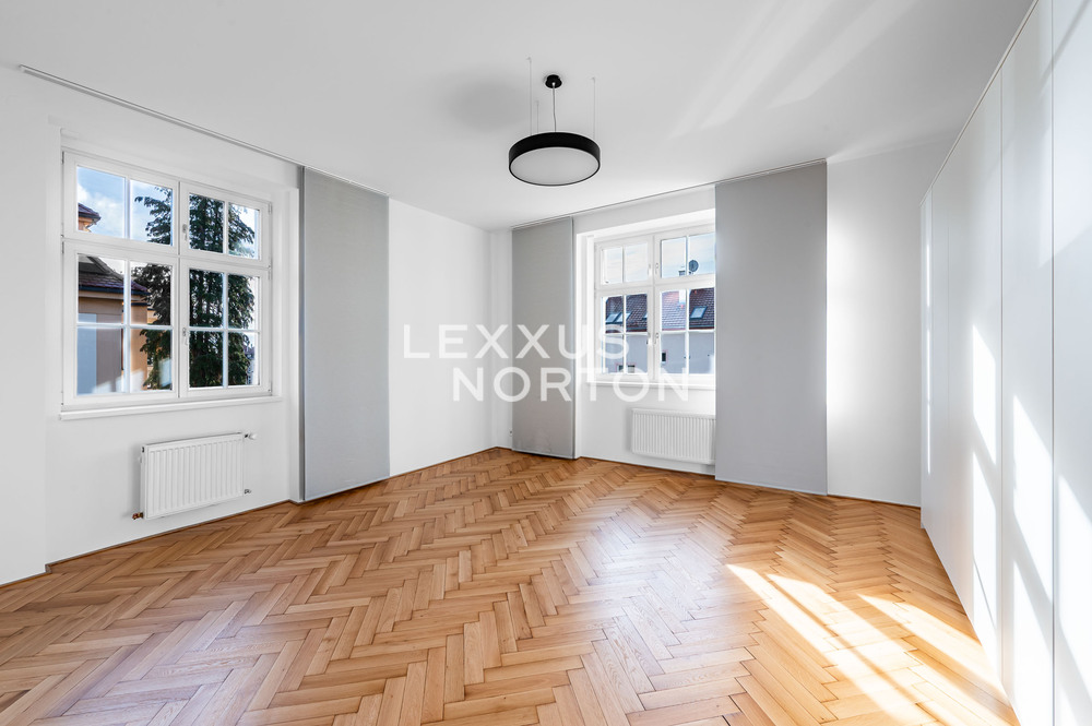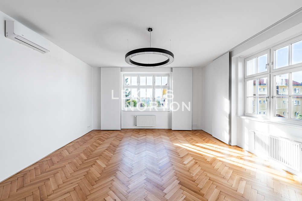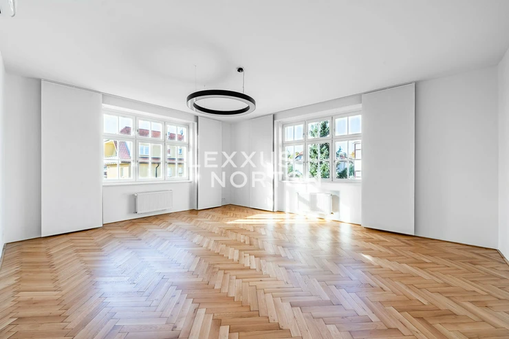 Luxury partly furnished 2 bedroom apartment of 137 sqm with a loggia of 3 sqm and a common garden in the courtyard of the house, situated on the 1st floor of a renovated villa residence Hanspaulka in Prague 6 - Dejvice.The apartment has a spacious living room with a dining area and direct access to a loggia overlooking the garden, a fully equipped kitchen, two bedrooms, a bathroom, and a separate toilet. The apartment also includes one parking space on the property.The apartment is partially furnished - there is a ceramic hob, oven, refrigerator, freezer, microwave, and dishwasher. The bathroom has a bathtub and separate shower, and the toilet is separate. One of the bedrooms has a built-in wardrobe.One of the most prestigious residential areas of Prague with the atmosphere of the first republic villas and excellent accessibility - bus to metro Borislavka 8 minutes, by car 9 minutes to the highway, 14 minutes to the airport and 5 minutes to OC Borislavka. There are complete civic amenities in the area including Czech and international schools, doctors, shops and cafes. For leisure there are sports facilities, tennis courts and the Sarka-Lysolaje Nature Park.The amount of billable monthly deposits is 6.100 CZK + electricity and gas is transferred to the tenant.The inquiring client agrees to pay a commission of 1 month's rent plus VAT.If you are unable to view the property in person, we also offer you a video tour from the comfort of your home in real time via Messenger, WhatsApp and other communication platforms.