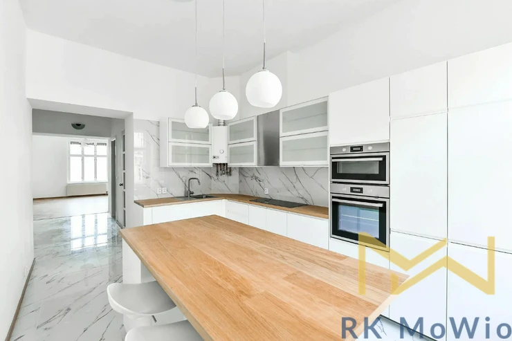 The apartment’s layout includes an entrance hall, a bright living room, a kitchen with a dining area, 4 bedrooms, and 2 bathrooms. The apartment is equipped with a kitchen unit (including a fridge with freezer, ceramic hob, extractor hood, dishwasher, microwave, and electric oven), built-in wardrobes, connections for a washing machine and dryer, and for high-speed internet, wooden floors, and tiles. Parking space can be rented for an additional fee.