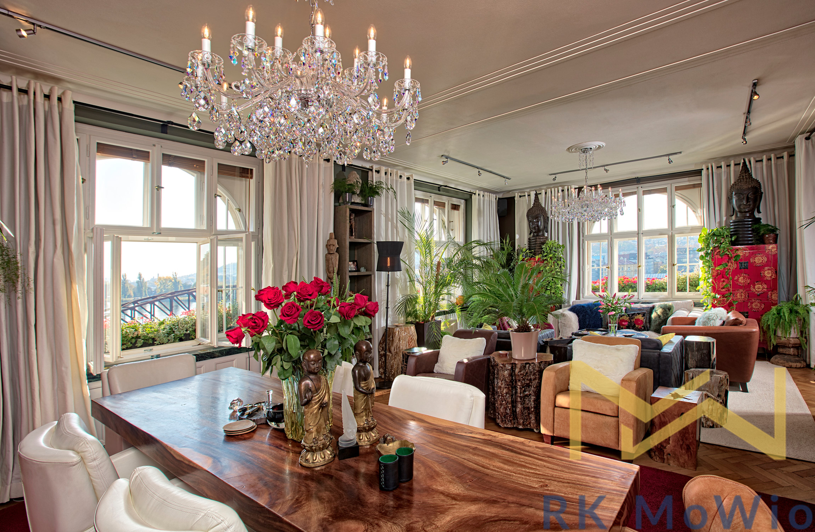 We offer for rent a spacious, fully equipped apartment No. 15, with four bedrooms, an area of 600 sqm with a terrace (200 sqm), located on the 6th floor (7th above-ground floor) of an Art Nouveau building with an elevator on Rašínovo nábřeží in the sought-after area of Prague 2 - Nové Město.
