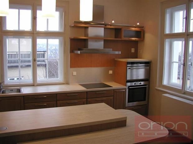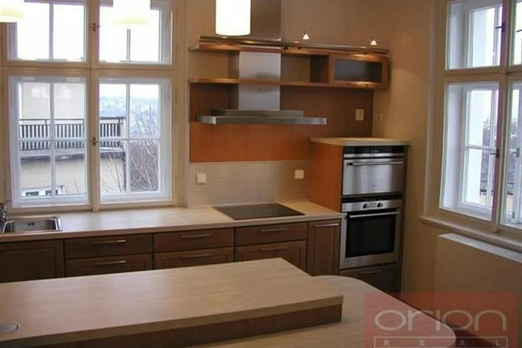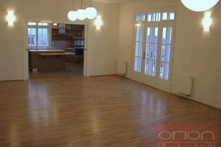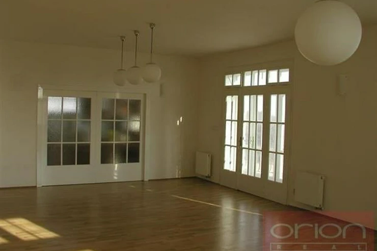 We offer for rent a luxury four bedroom apartment with a terrace and a beautiful view of Prague. The apartment with an area of 182 sqm is located on the 1st floor of a renovated villa in a quiet residential area of Prague 5 with lots of greenery in the surroundings and with excellent access to the Anděl shopping center and the city center. On the lower floor of the apartment there is a spacious living room connected to a fully equipped kitchen and access to an 18 sqm terrace, 1 bedroom, a bathroom with a shower and toilet and a separate toilet. The upper floor offers 3 bedrooms, one of which has a private bathroom and dressing room and a separate bathroom with toilet. The upper floor has air conditioning and a storage attic space. The apartment features wooden parquet floors, built-in wardrobes, blinds, a washing machine, a dryer, internet, security doors and a basement storage of 20 sqm. Tenants have access to a well-kept garden of 664 sqm with a garden gazebo. Parking on the property for 2 cars. Excellent transport accessibility by car and public transport to the Anděl metro station and the German and French schools.