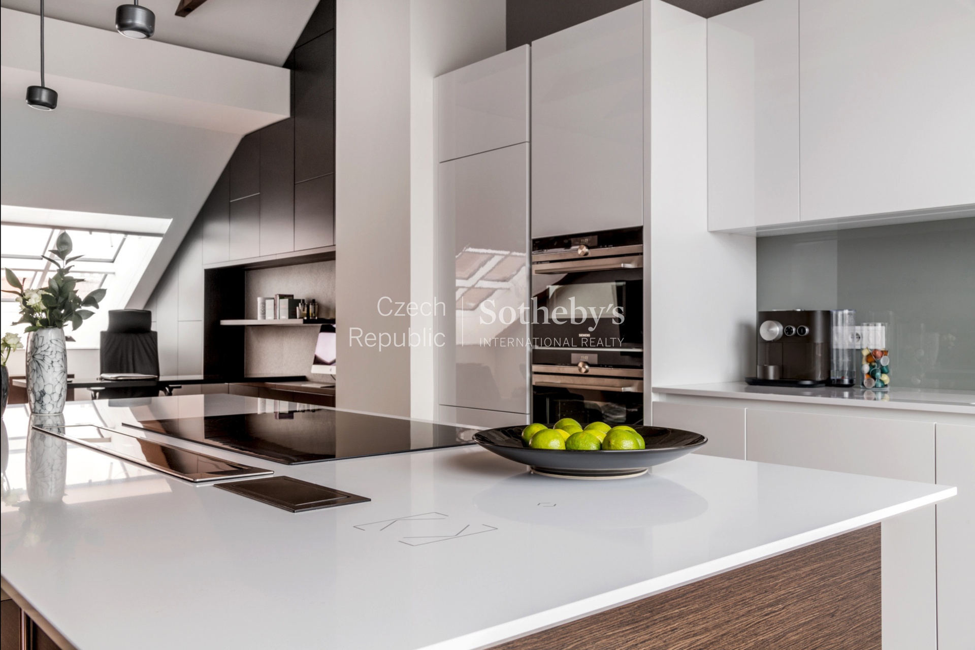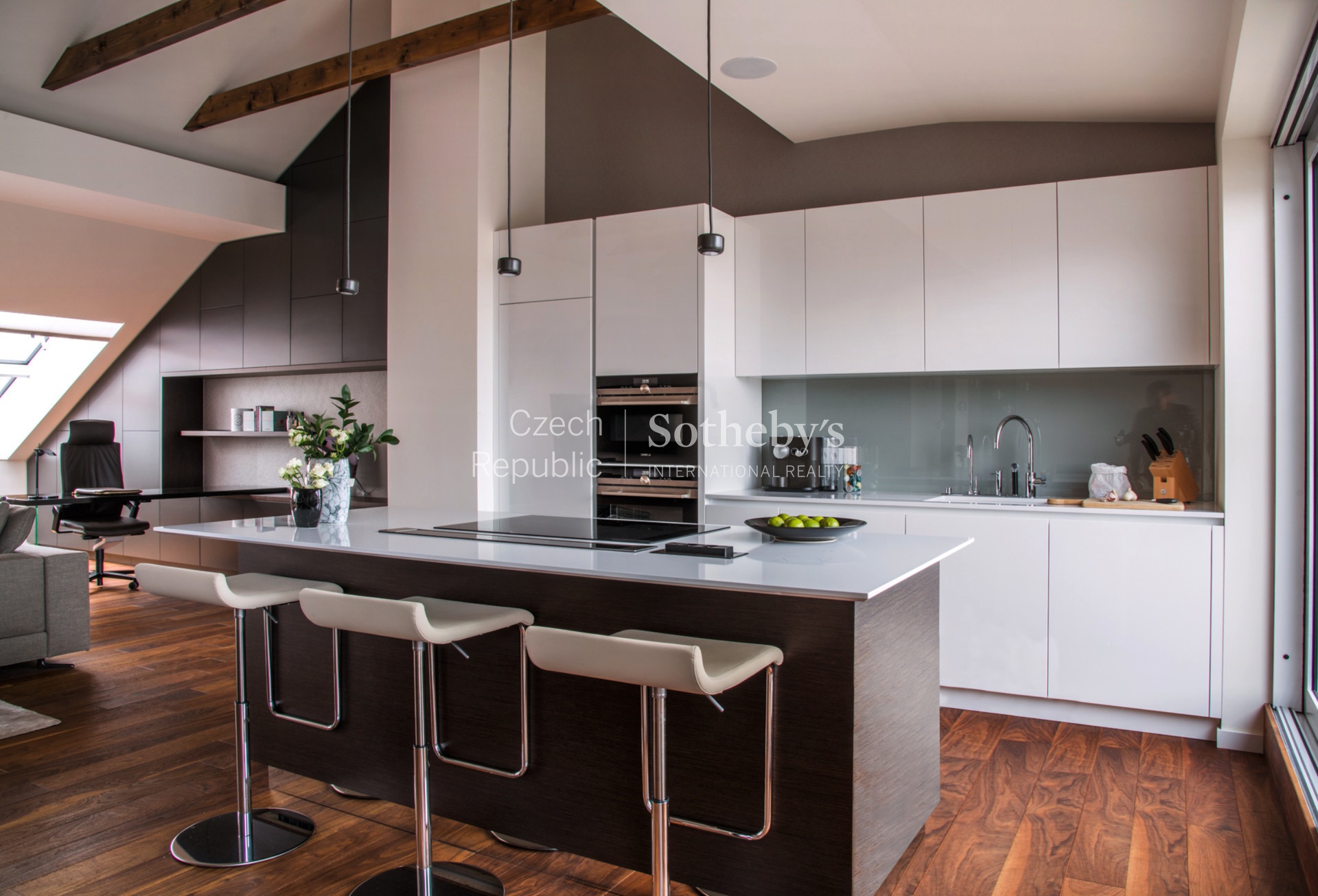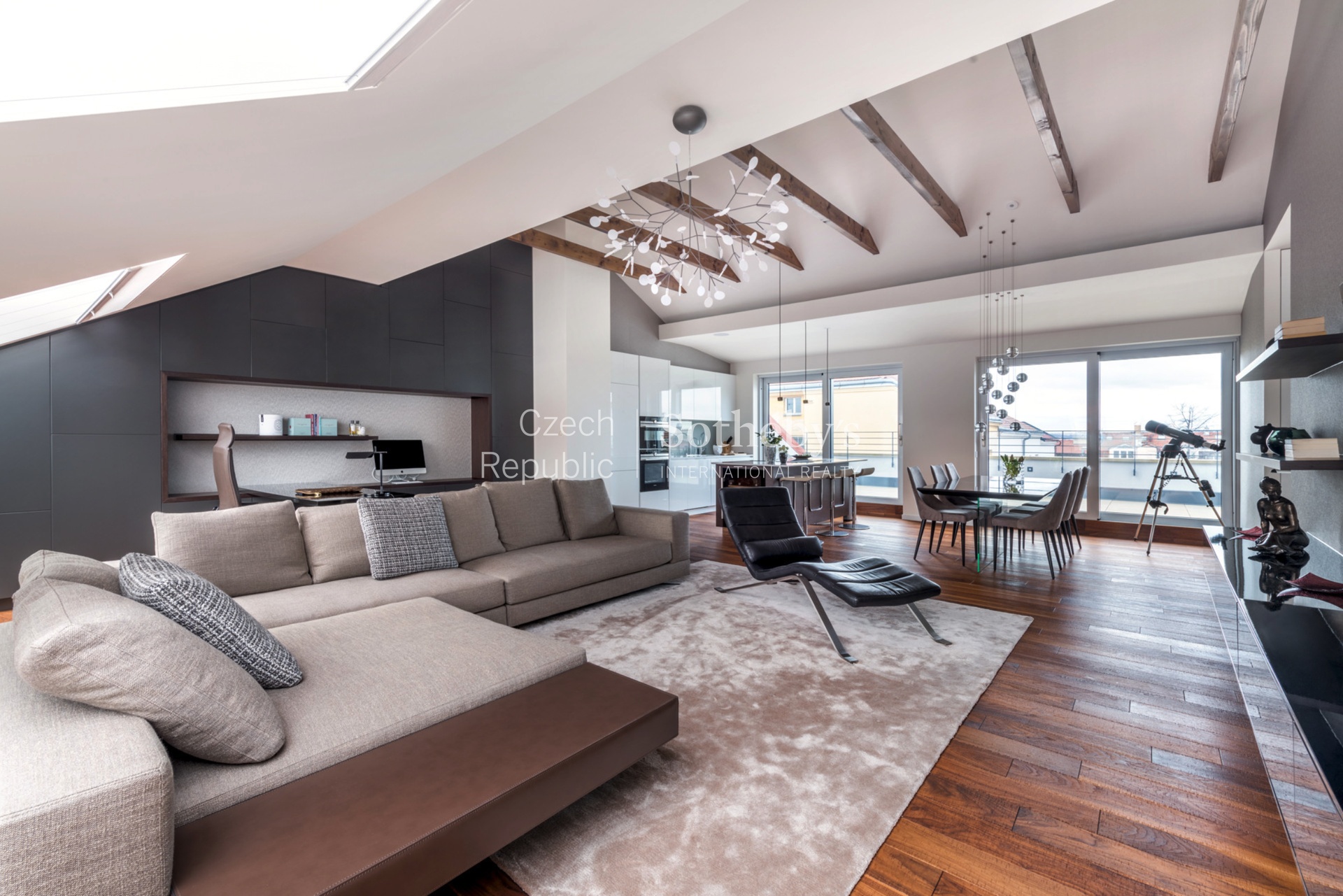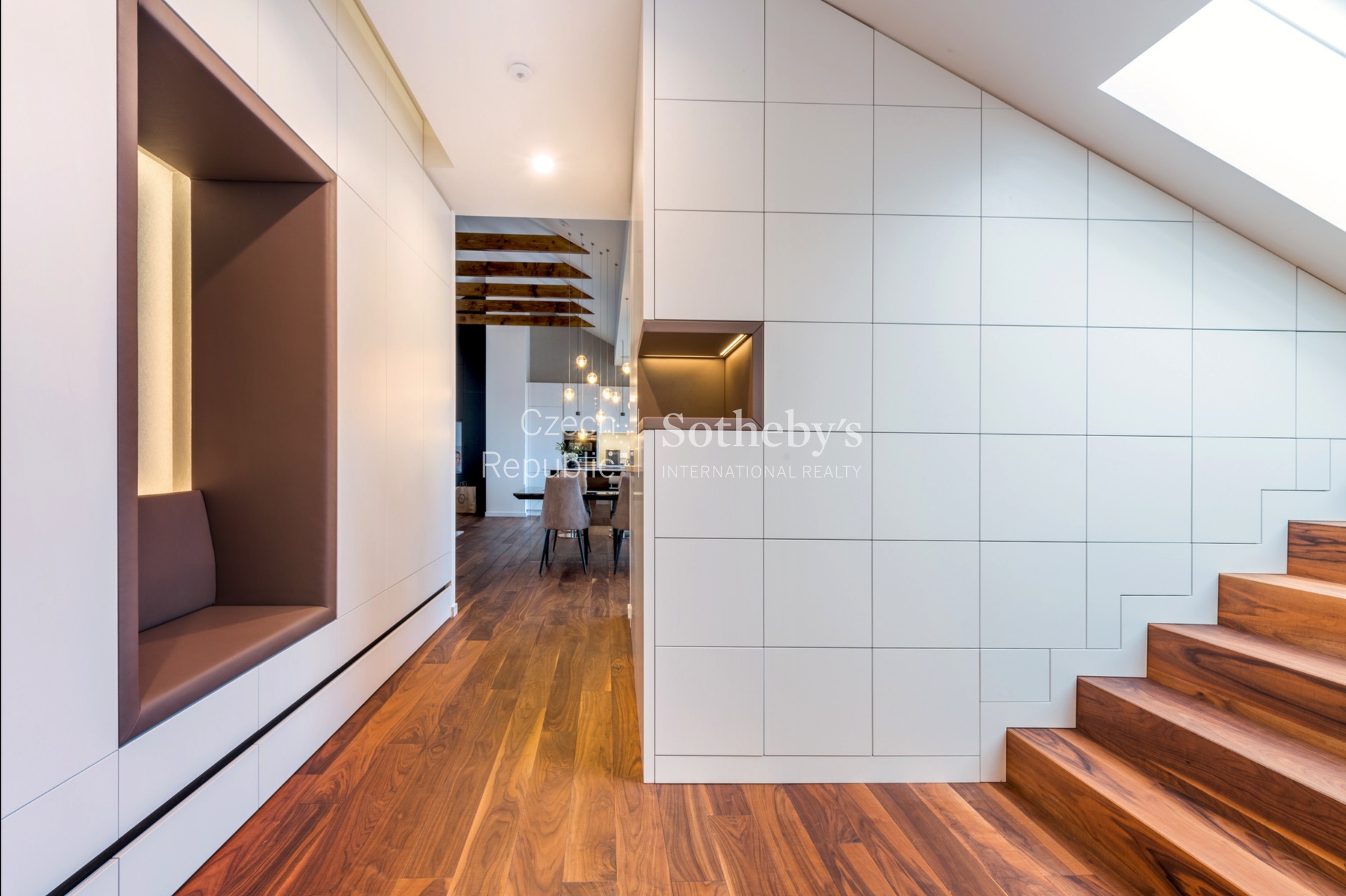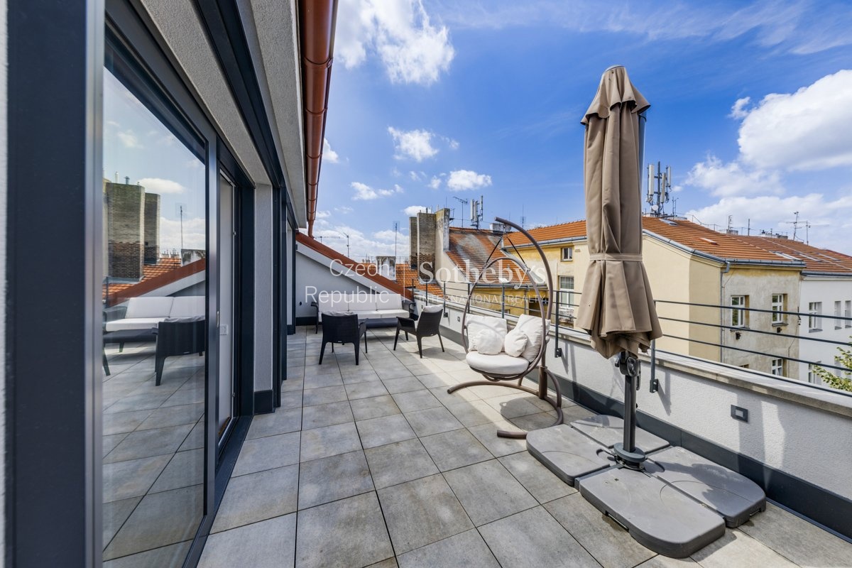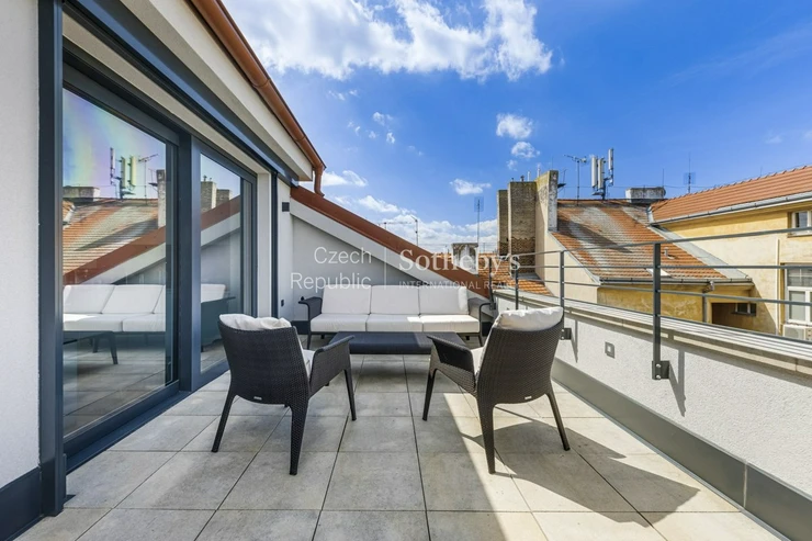 We offer for rent a modern apartment with spacious terraces and a view of Prague Castle in the heart of Královské Vinohrady. The interior of the apartment is equipped to the highest standard according to the design and author's realization of the de.fakto studio.