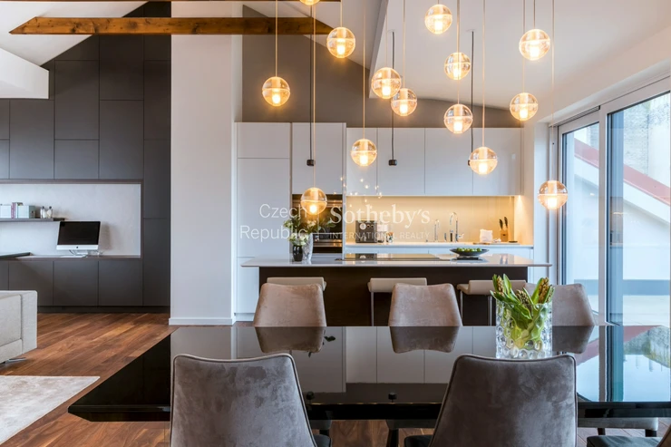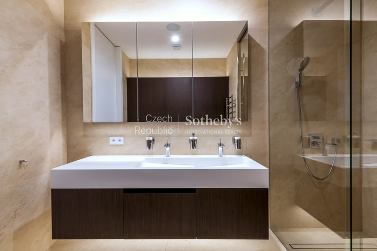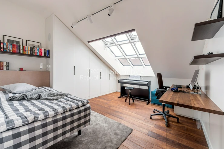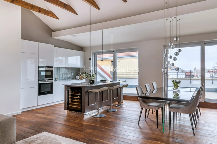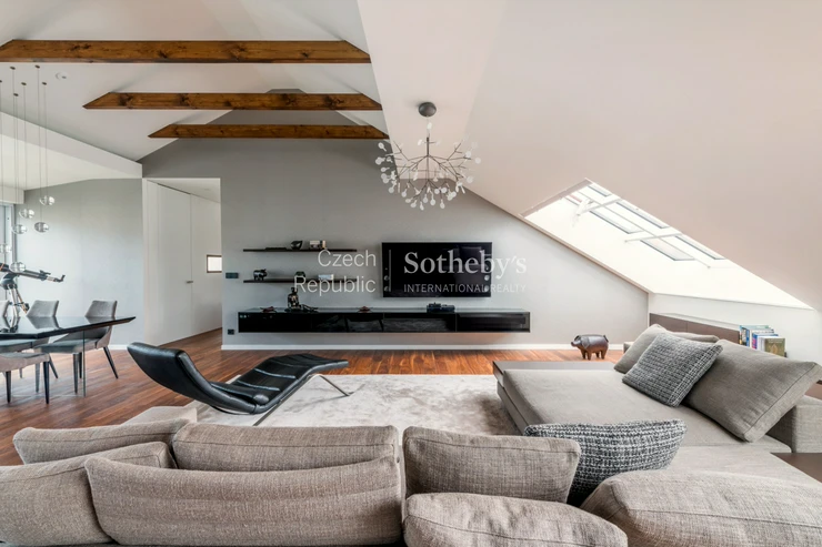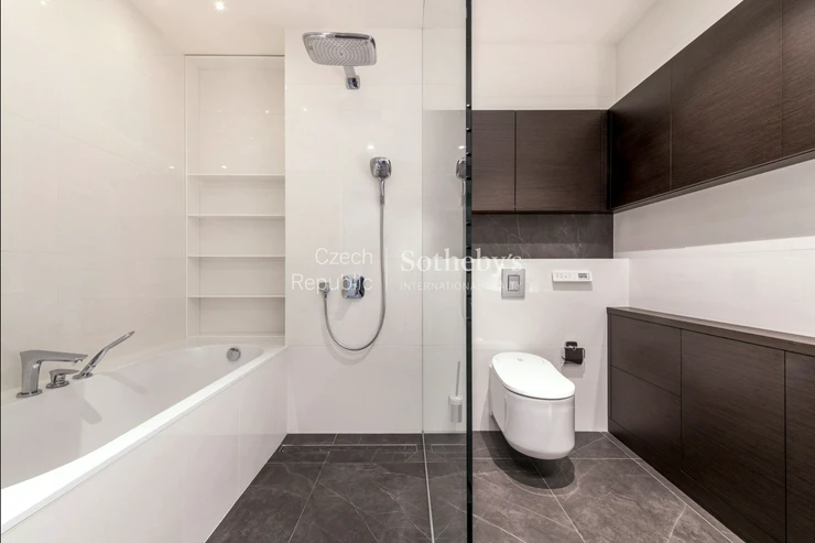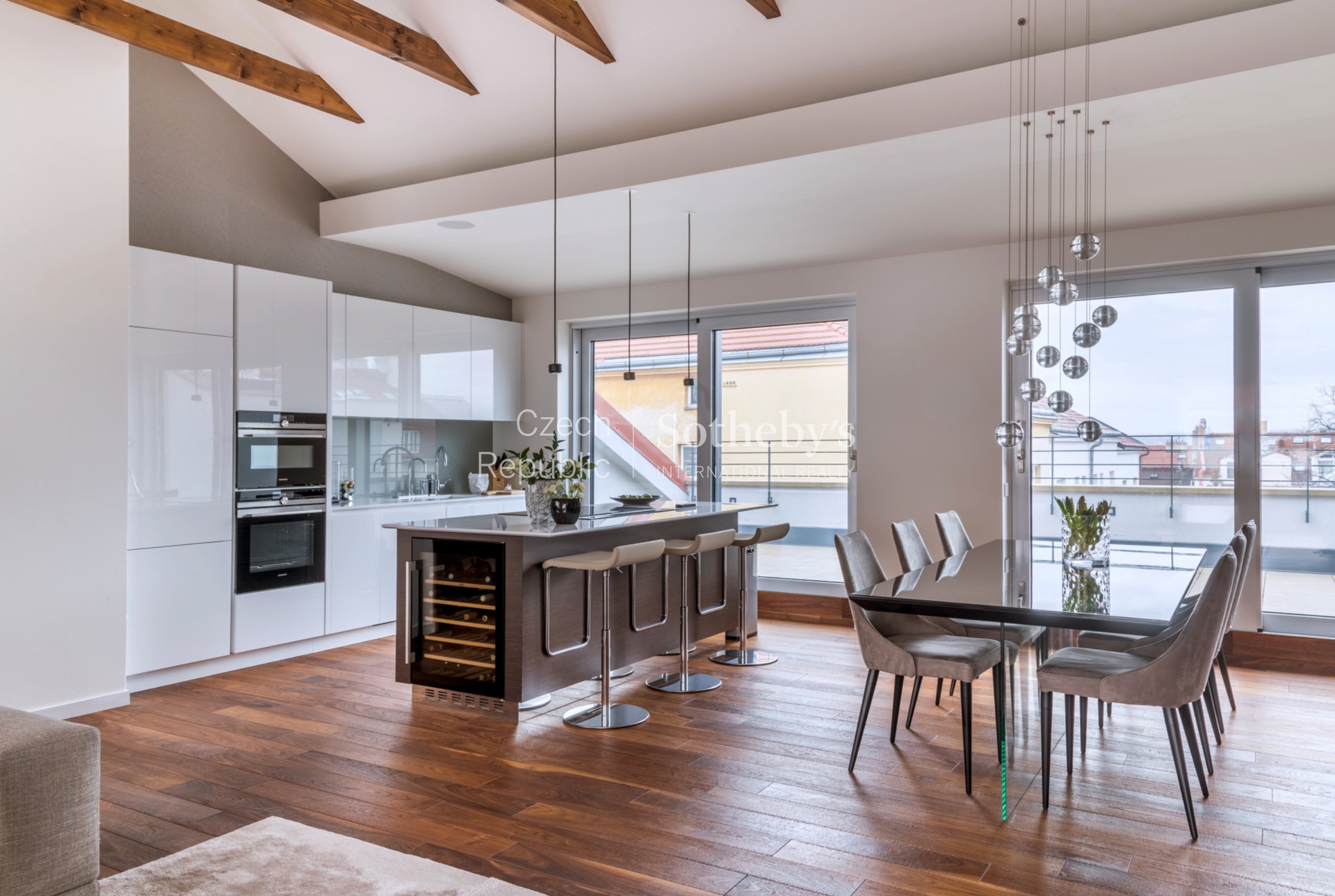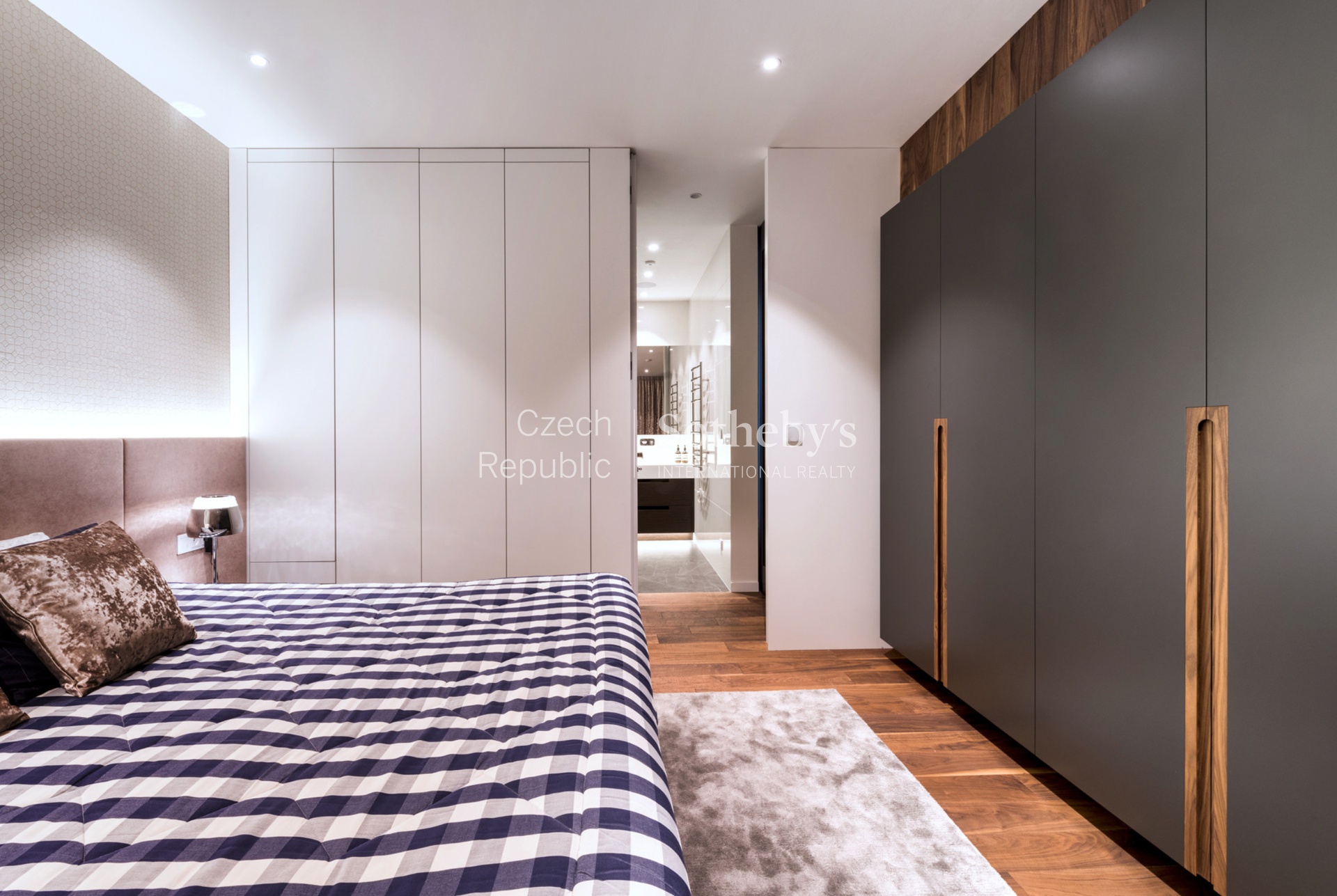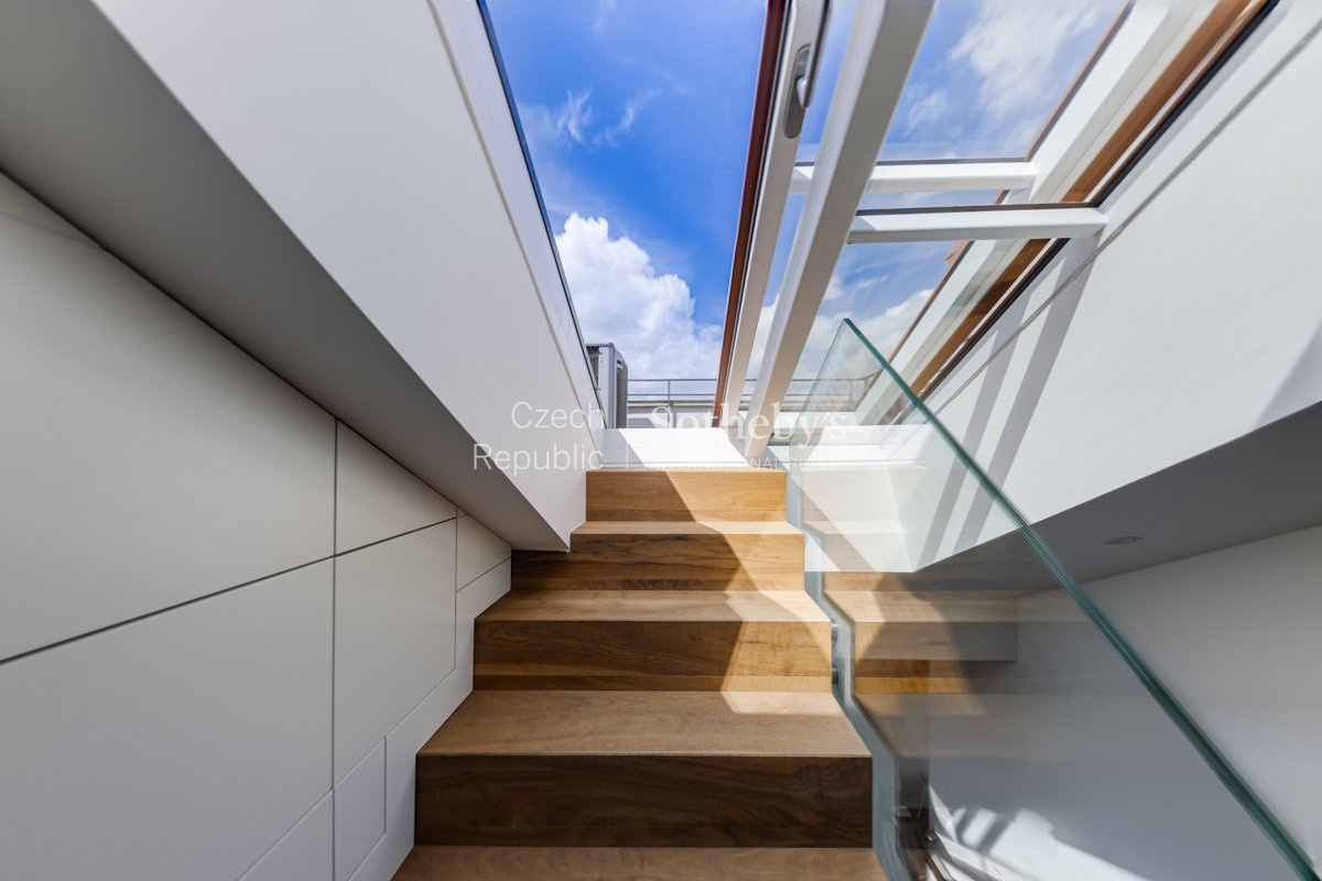 We offer for rent a modern apartment with spacious terraces and a view of Prague Castle in the heart of Královské Vinohrady. The interior of the apartment is equipped to the highest standard according to the design and author's realization of the de.fakto studio.