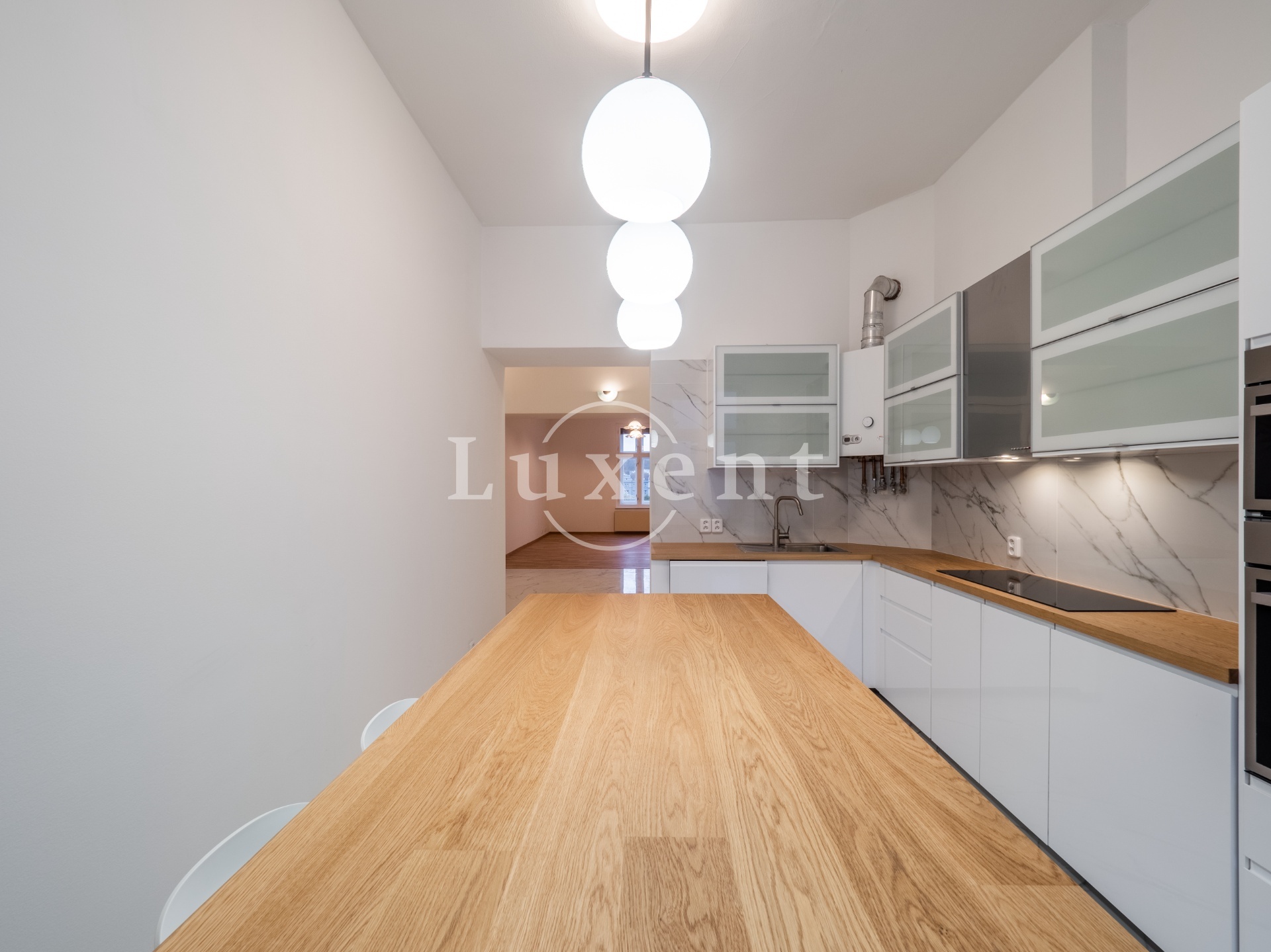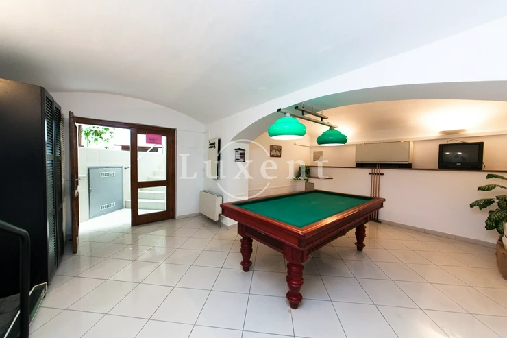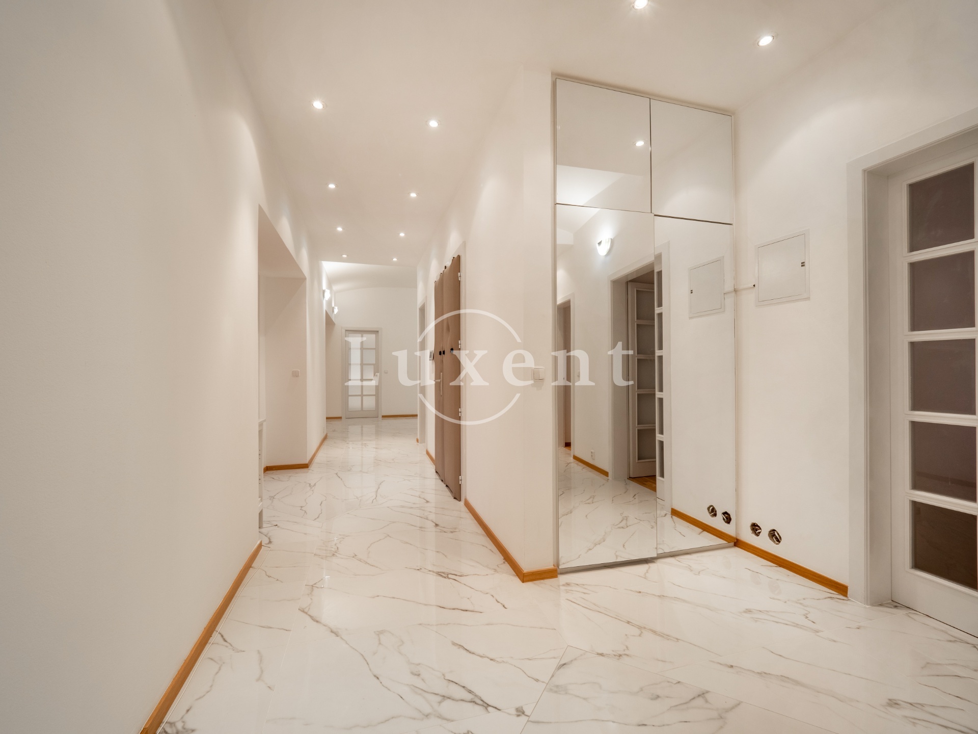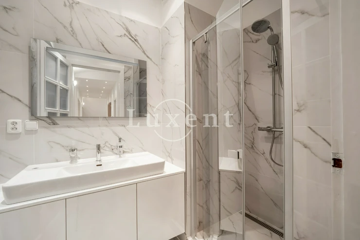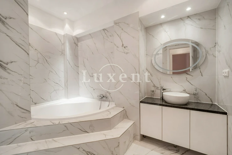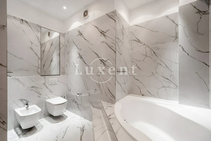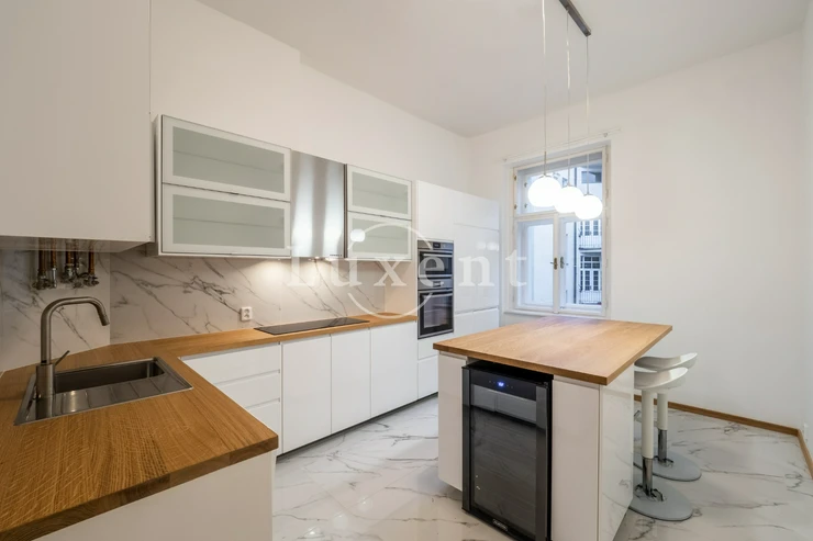 We offer for rent an unfurnished but spacious 6+1 apartment with a living area of 200 sqm on Rašínovo nábřeží with a beautiful view of the Vltava River and its Malostranský bank. The apartment is located in a completely renovated Art Nouveau building with an elevator and a number of extra services such as 24-hour reception, swimming pool (6x11 m), sauna, jacuzzi, fitness and games room with billiards.