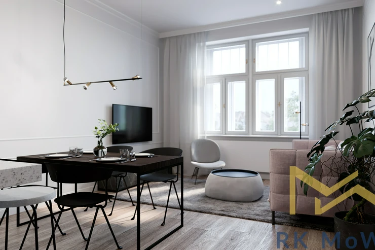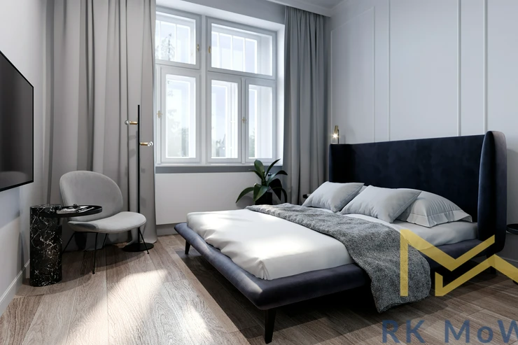 We are offering for rent an airy apartment with a layout of 2-bedroom + kitchenette and a floor area of 93 sqm, located on the 4th floor (5th above ground) of a historic building with an elevator, in the sought-after area of Jiřího z Poděbrad Square in Prague 3 – Vinohrady.