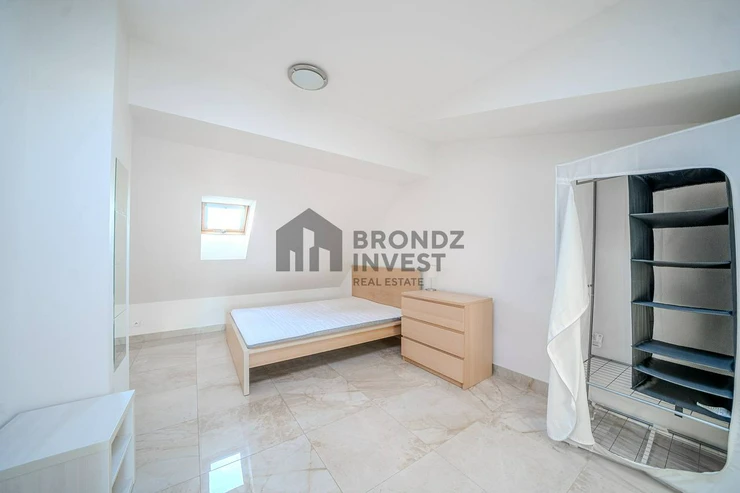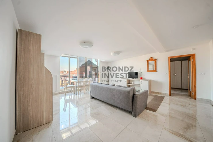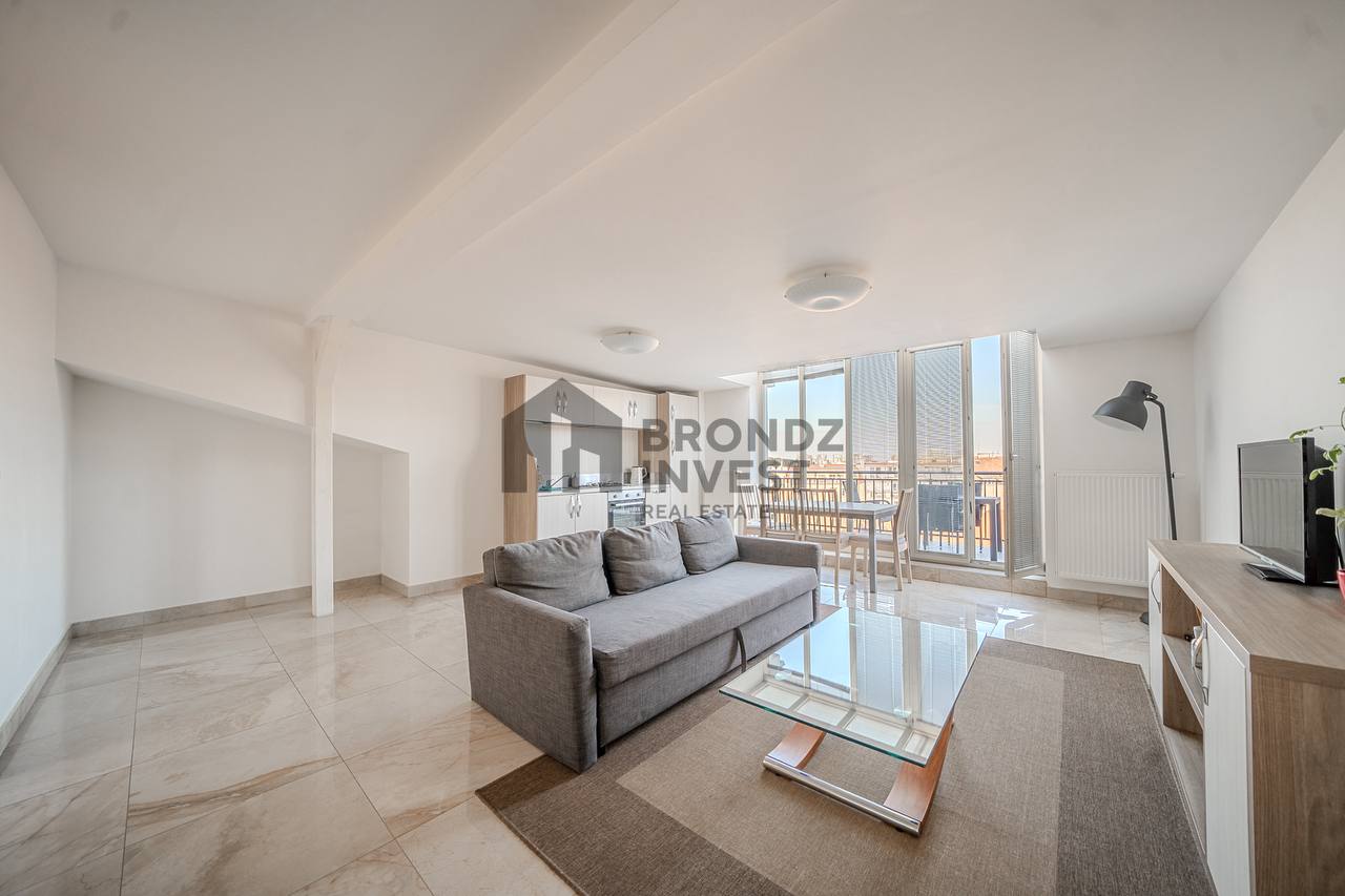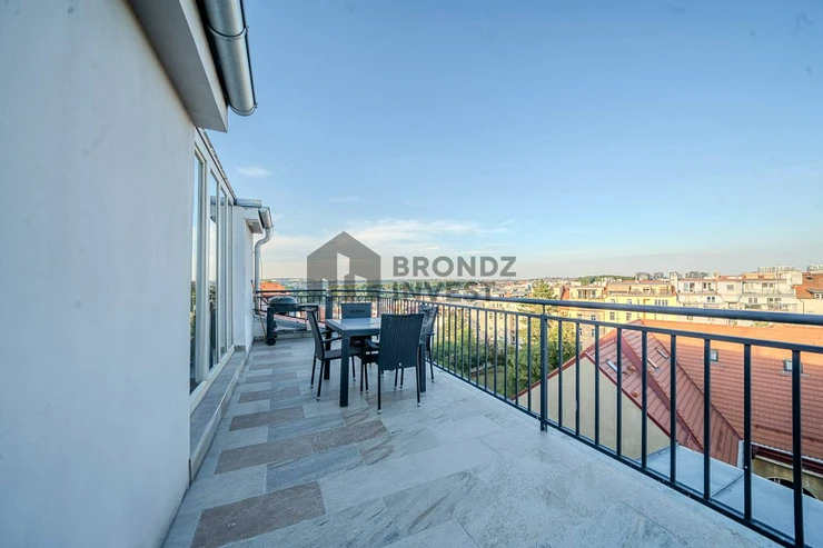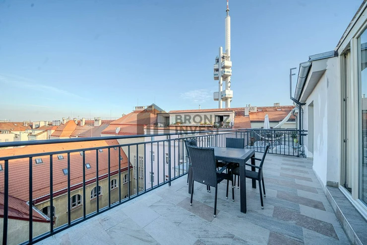We offer for rent a luxurious modern apartment with a terrace, 3+kk, located near the Žižkov Television Tower and Jiřího z Poděbrad Square.