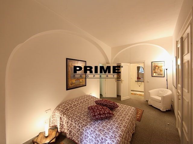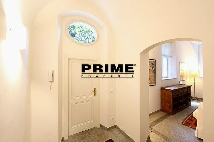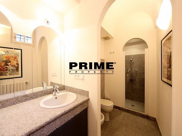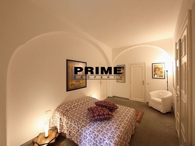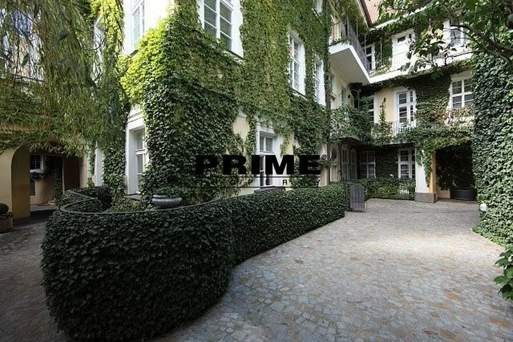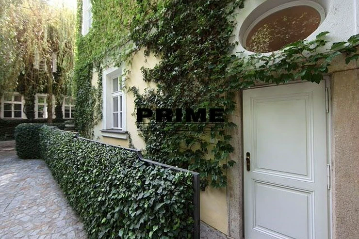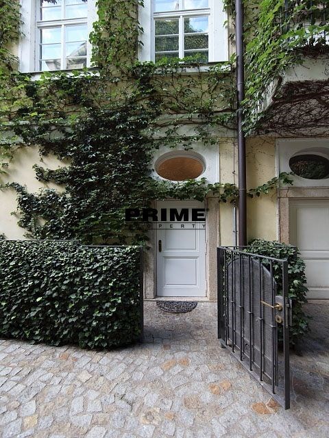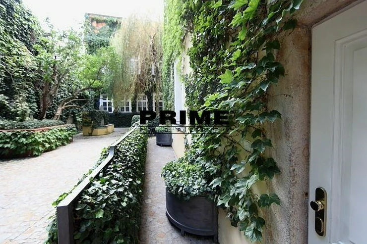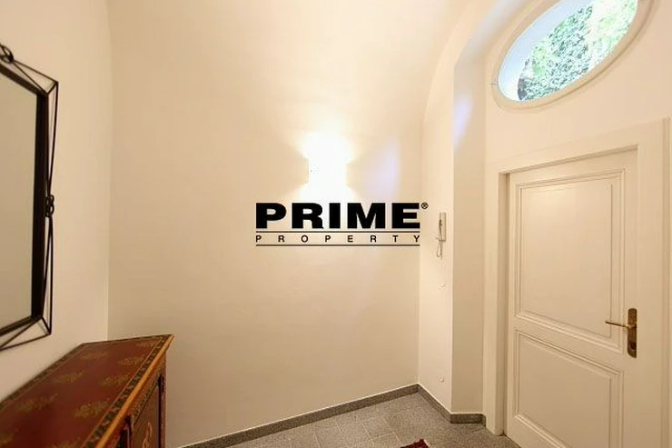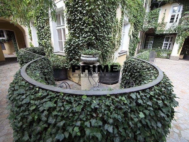 Lessee pays no real estate agency commission. Charming, 1 bedroom, 2 bathroom, furnished apartment for rent, 2+kk, 92m2, with a 20m2 private garden terrace, situated on the ground floor of a completely renovated period building with a picturesque green courtyard with a fountain.