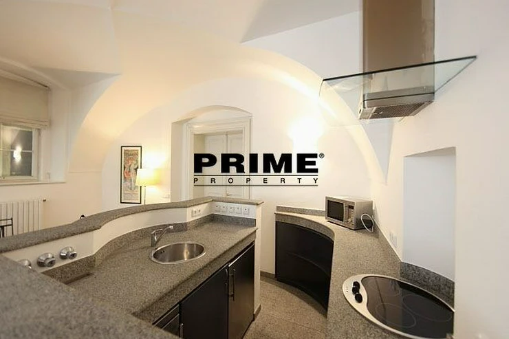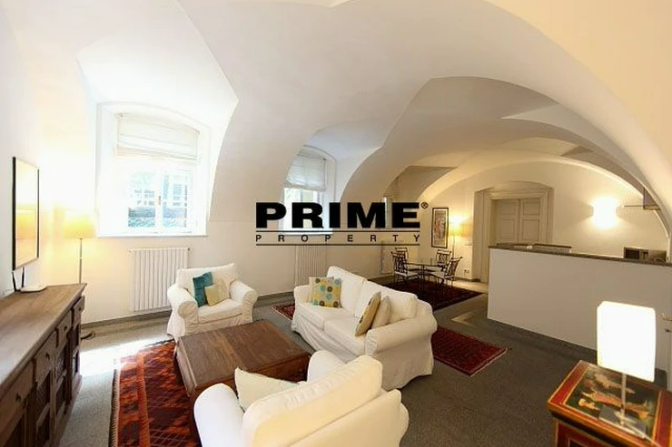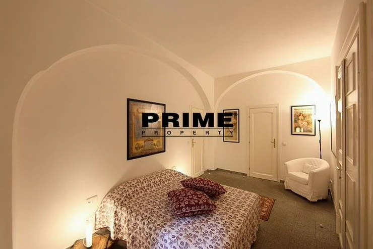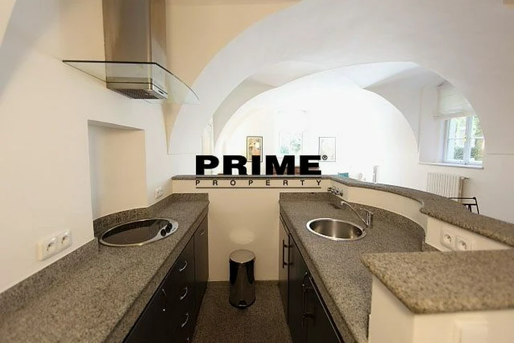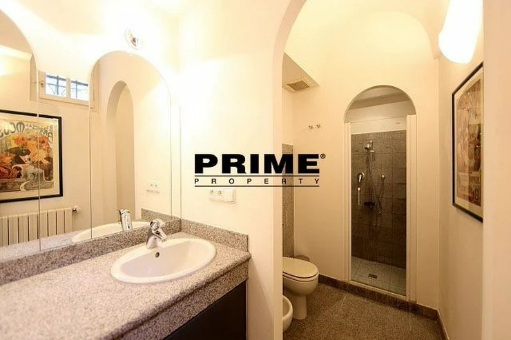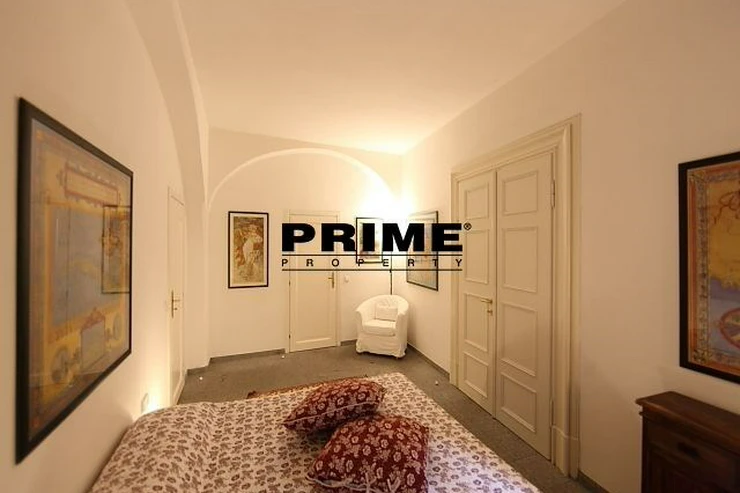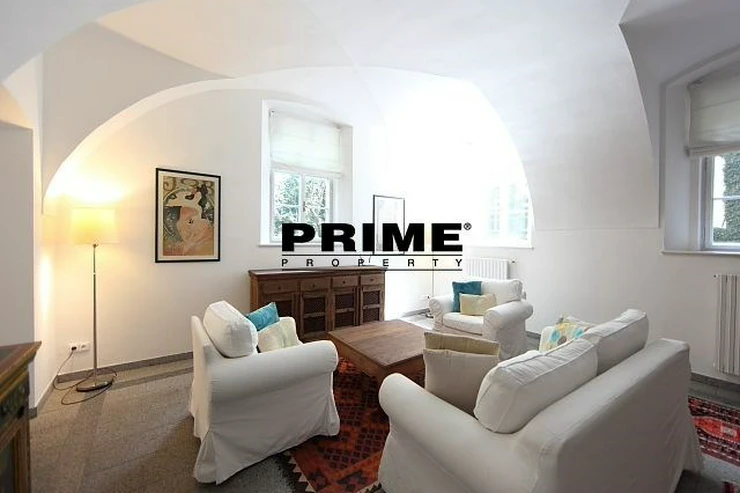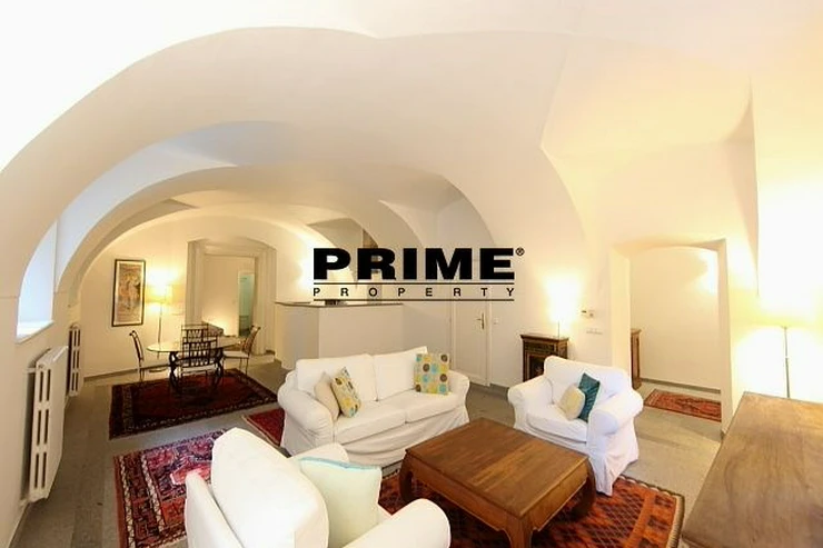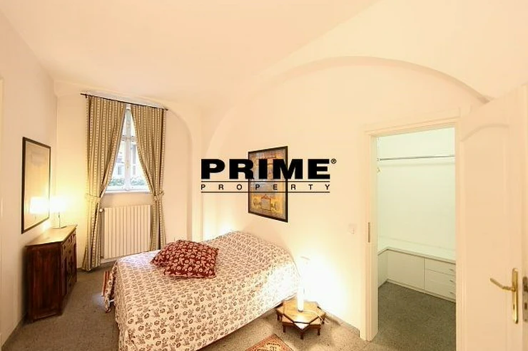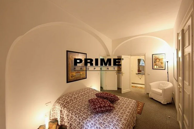 Lessee pays no real estate agency commission. Charming, 1 bedroom, 2 bathroom, furnished apartment for rent, 2+kk, 92m2, with a 20m2 private garden terrace, situated on the ground floor of a completely renovated period building with a picturesque green courtyard with a fountain.