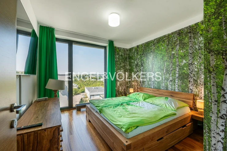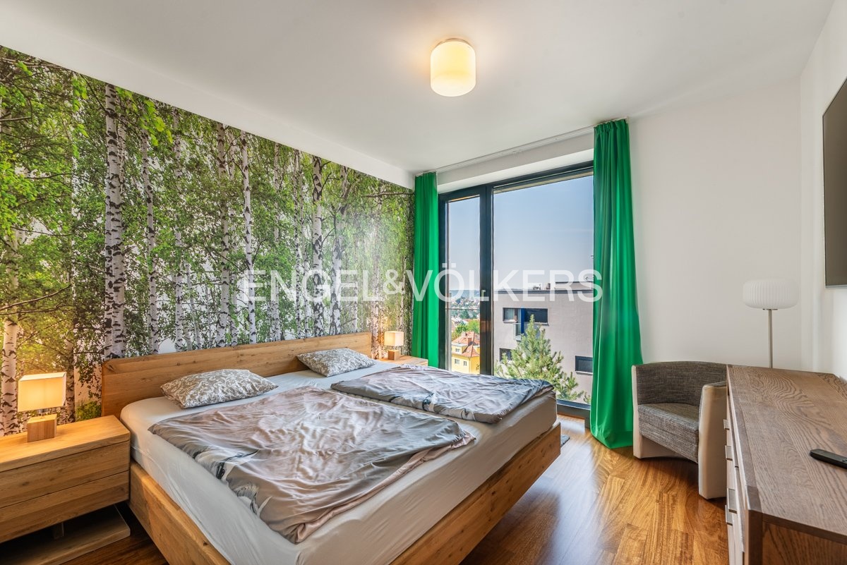 A fully furnished 3+kt apartment of 102 sqm with a balcony is available for immediate rent, located on the 5th floor of the attractive residential project Kavčí Hory Residence, close to the Arkády shopping center and the business district in Pankrác.