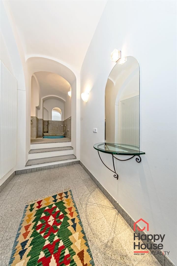 Luxurious living in complete peace and privacy, yet right in the heart of Malá Strana between Petřín Park and the Prague Castle complex near Charles Bridge. The area offers all civic amenities. You will find public parking, tram and bus stops, metro station A, grocery stores, cafes, pubs, restaurants, concert halls, jazz bars, theaters, various monuments, etc.