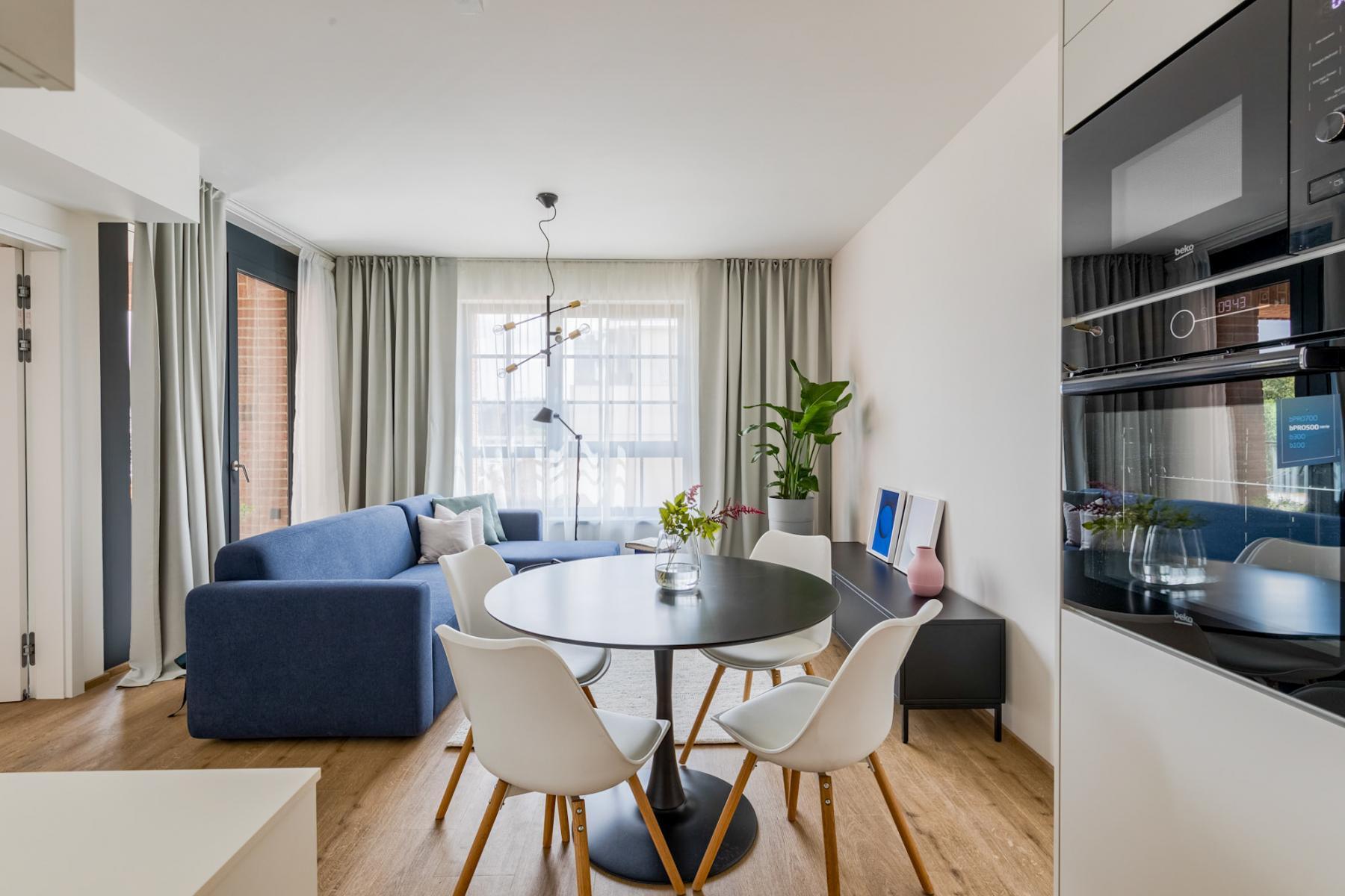 Byt nabízí prostorný obývací pokoj spojený s moderní kuchyní, plně vybavenou spotřebiči a úložným prostorem. Z obývací části i z ložnice je přímý vstup na terasu. Dále zde naleznete útulnou ložnici, koupelnu se sprchovým koutem a WC, praktickou komoru s pračkou a velkorysou vstupní chodbu s úložnými skříněmi.