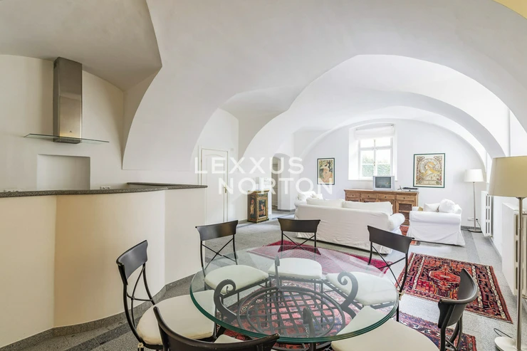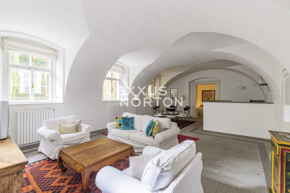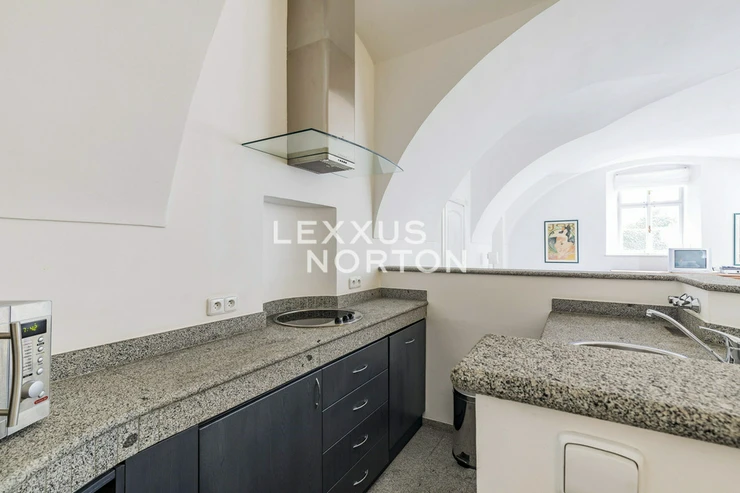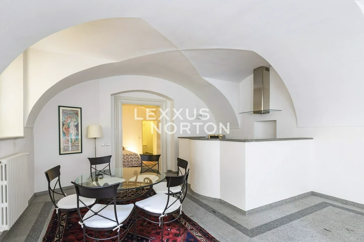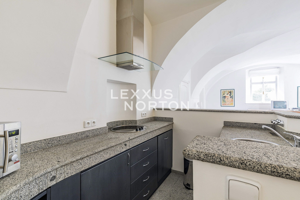 Atypical apartment with vaulted ceilings and with spacious terrace for rent located on the ground floor of a historic building directly under the Petrin lookout tower in a beautiful part of Prague 1 - Mala Strana. Completely furnished interior with an area of 92 sqm offers to use entrance hall, living room with fully equipped kitchenette (ceramic hob, oven, fridge, freezer, dishwasher, microwave) dining area and entrance to the terrace, bedroom with dressing room, two bathrooms, one with a sunken bathtub, the other one with shower, and a chamber.The apartment is fully furnished. It has a built-in wardrobe, two bathrooms—one with a sunken bathtub and the other with a shower—and a storage room. The living room offers a sofa set and a dining area, and the bedroom is equipped with a bed. The kitchenette is equipped with a ceramic hob, oven, refrigerator, freezer, microwave, dishwasher, and extractor hood. A washer-dryer is also available.Trams, buses, and the Malostranska metro station are available in the area. Shops, restaurants, cafés, hospitals, pharmacies, theaters, and a post office are within walking distance. Prague Castle, Charles Bridge, Kampa, Certovka, and romantic streets are nearby. For leisure activities, you can use the sports facilities or take the cable car to Petrin. You can take a walk in the Kinsky, Lobkovice, Valdstejnska, and Vrtbovska gardens or in the Petrin, Vojanske, and Chotkovy parks. By car, you can reach the city ring road in 10 minutes, Vaclav Havel Airport in 23 minutes, and the Novy Smichov shopping center in 5 minutes.The amount of billable monthly advances is CZK 2,600 + electricity and gas is transferred to the tenant.The inquiring client agrees to pay a commission of 1 month's rent plus VAT.If you are unable to view the property in person, we also offer a real-time video tour from the comfort of your home via Messenger, WhatsApp, and other communication platforms.