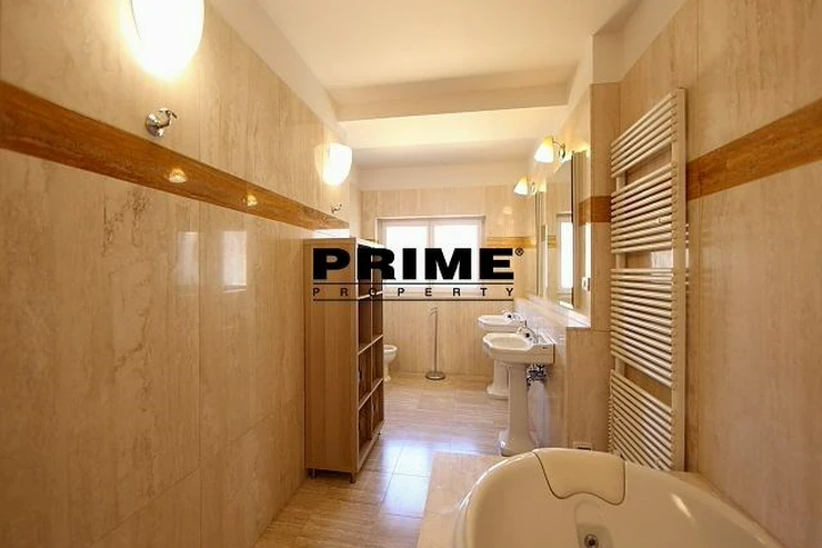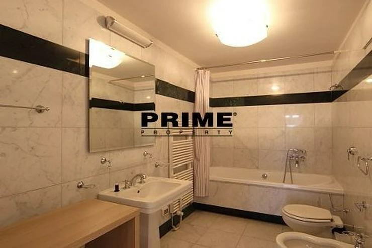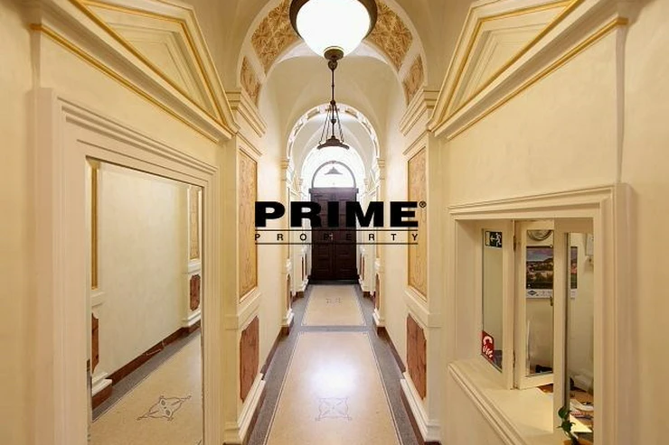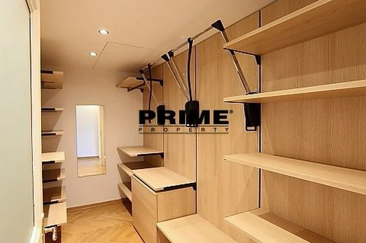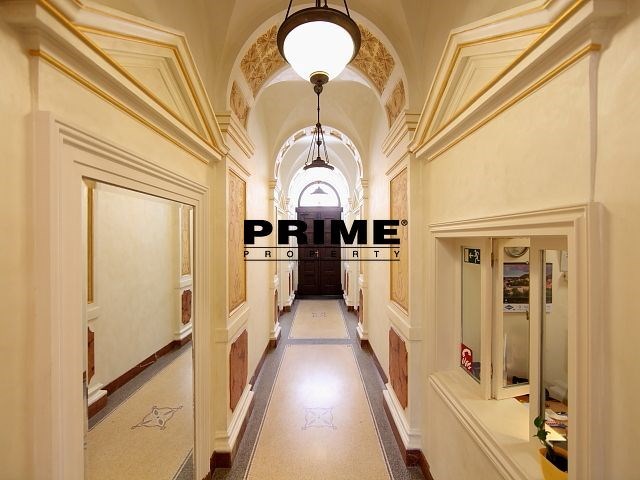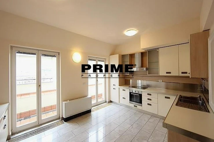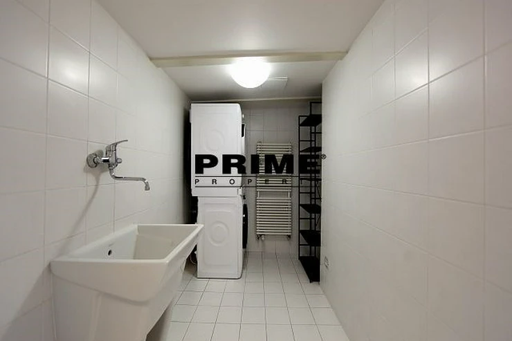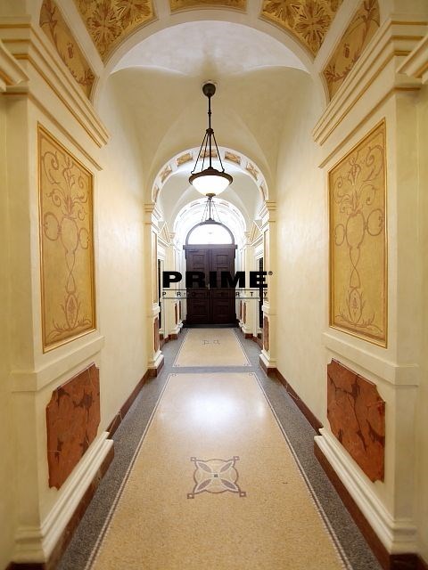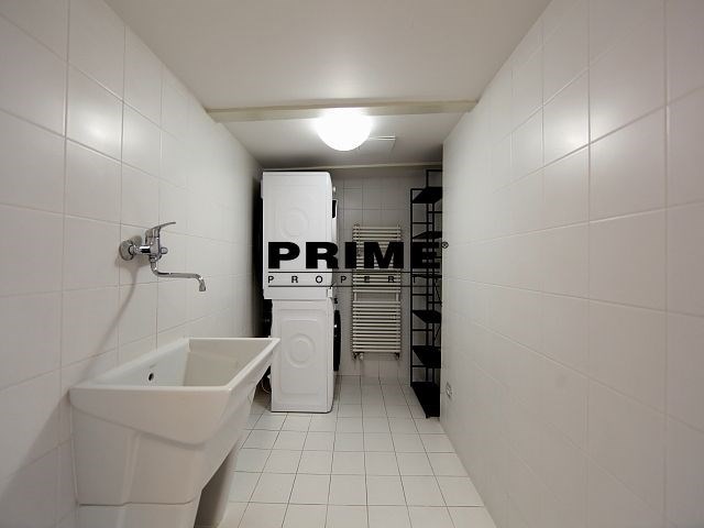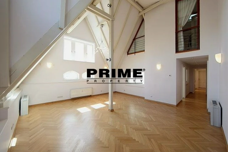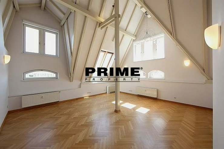 Wood parquet and marble floors, exposed wooden beams. Air conditioning, washing machine dryer, security entrance door, video entry phone, alarm system. The property has a cellar. The building features a reception desk (from 8am to 9pm). It is possible to rent a garage space (car height up to 150cm) in the building (using a car stacking system) at an extra cost of 3,900 Kč/month + VAT.