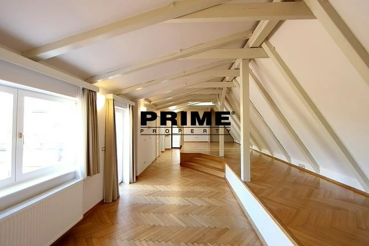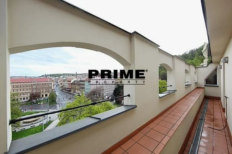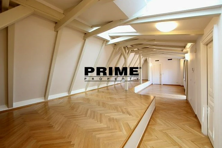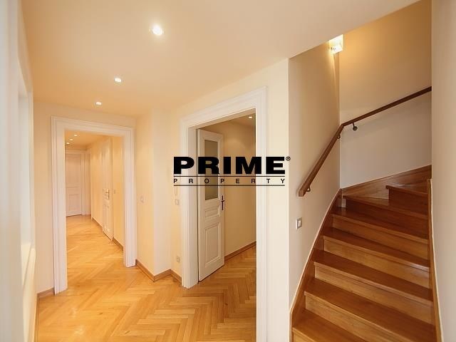 Exclusive, renovated, air conditioned, 3 to 4 bedroom, 3 bathroom, unfurnished duplex apartment for rent, 5+1, 265m2, with a 35m2 roof terrace, situated on the 5th and 6th floors of a completely renovated Neo-Renaissance building with a lift. The building is located directly on the boundary of Malá Strana and Smíchov districts, at the bottom of Petřín Hill Park, close to shops, cafés and restaurants and just a few minutes´ walk to the French School. Quick tram connections to Anděl metro station on yellow line "B", Nový Smíchov shopping mall and the city center.