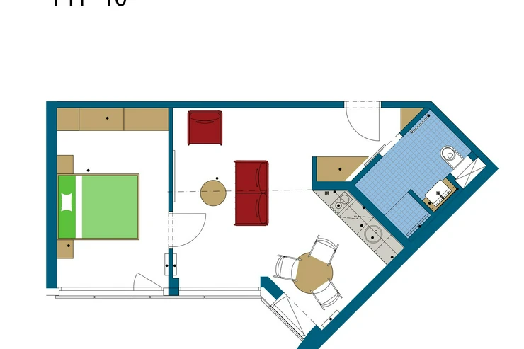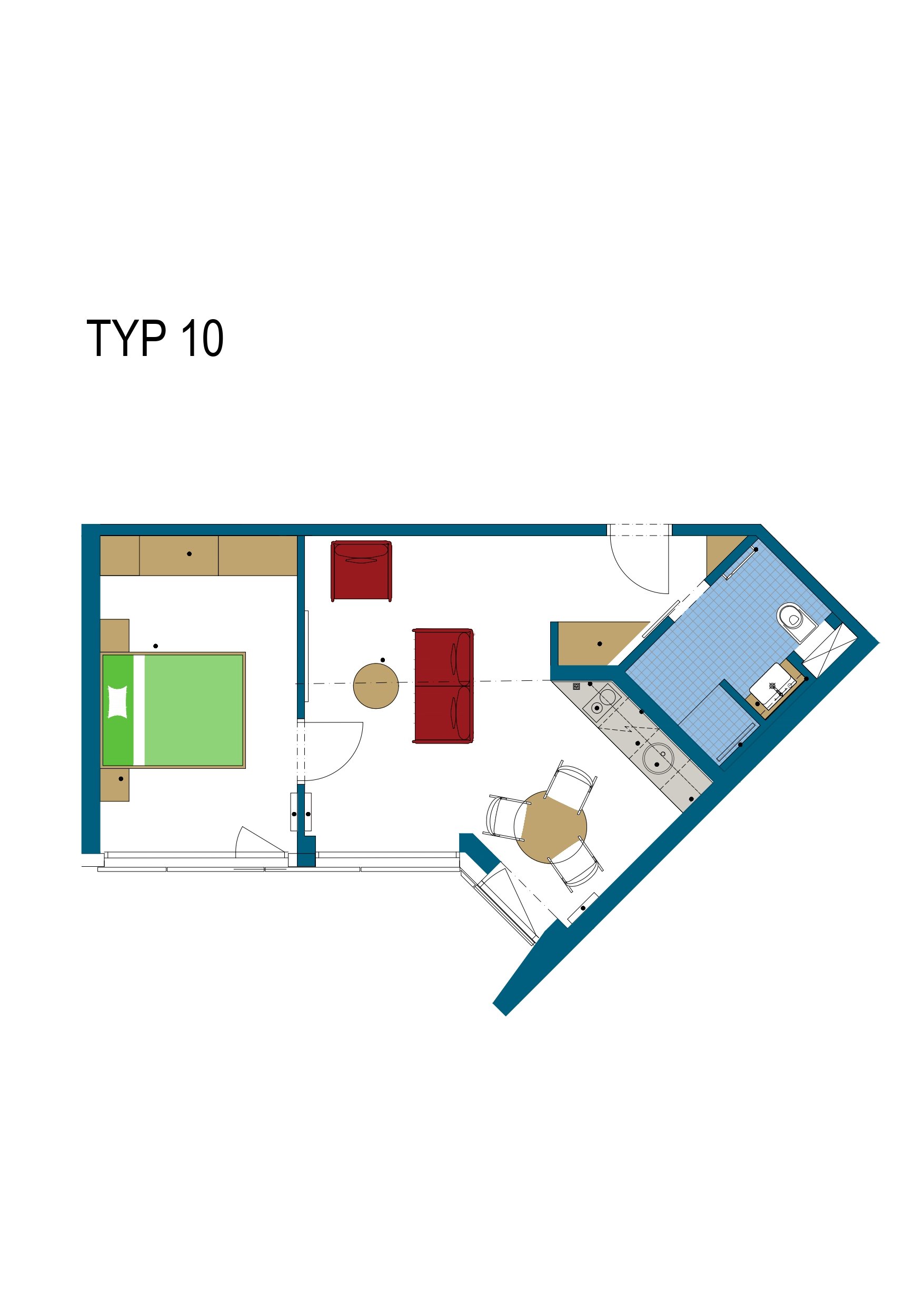 This modern 1 bedroom unit is suitable for 1-2 people without pets and consists of an entrance hallway, kitchen corner and dining area, living room, bathroom with shower corner + basin + toilet, and a separate bedroom with a queen bed and wardrobes. Cooling + fresh air delivery system.