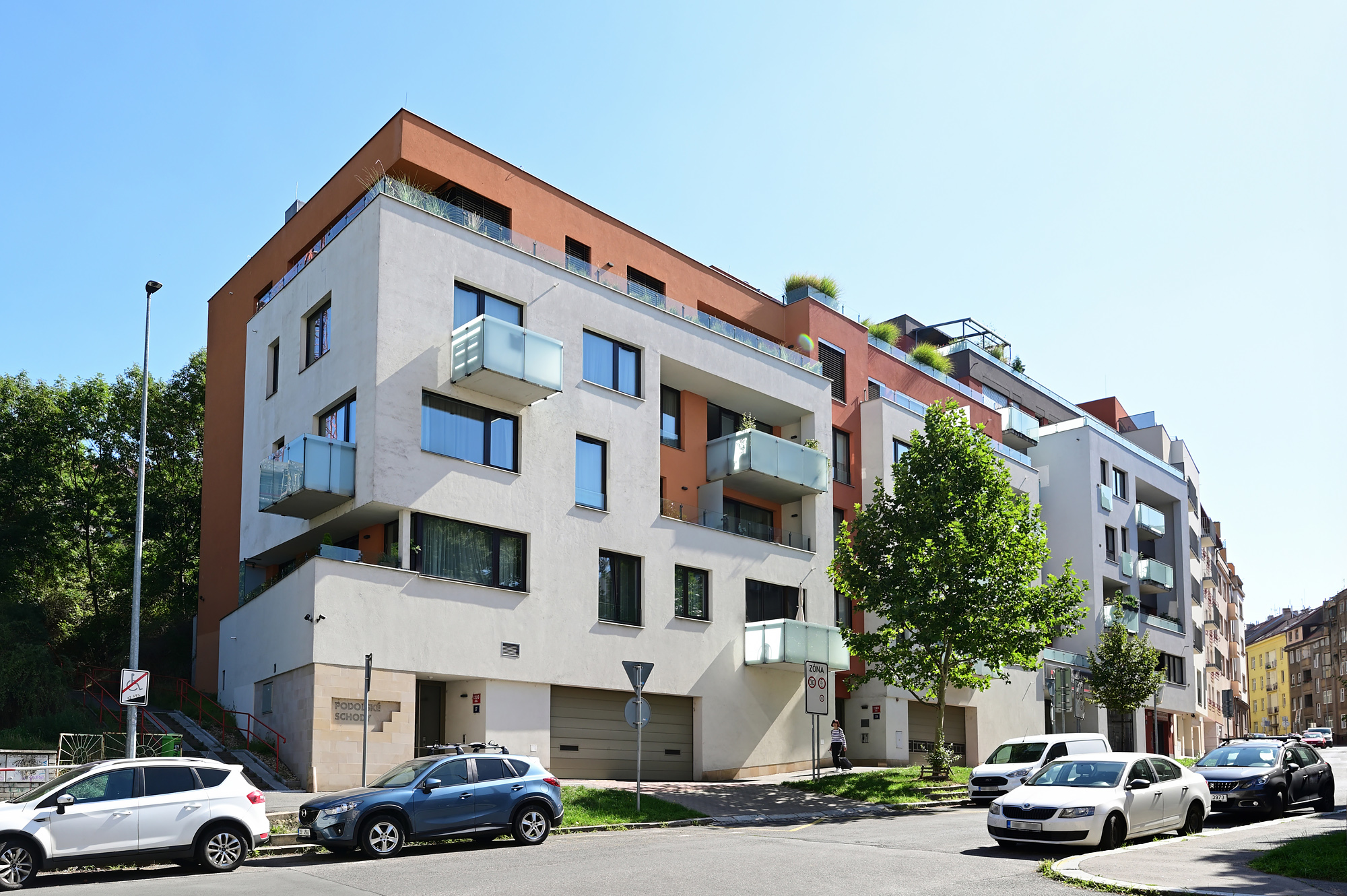 The location offers excellent public transport access – nearby you’ll find the Doliny or Podolská vodárna bus stops, with the latter also serving as a tram stop. Metro line C (Pražského povstání) is just a short ride away, and it’s not far to metro line B (Karlovo náměstí) either. Within walking distance, you’ll find convenience stores, a Penny Market, and a Tesco Express. The area also offers countless restaurants and services.