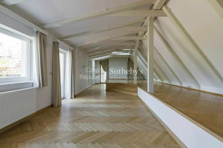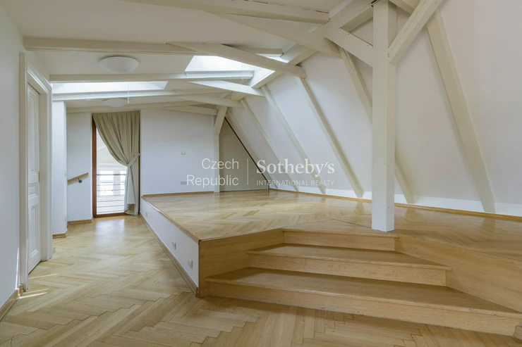 Czech Republic Sotheby’s Int. Realty offers for rent a duplex with an above-standard floor area of 252 m² located on the 5th and 6th floors of a neo-Renaissance apartment building after a complete reconstruction on the border of Malá Strana and Smíchov. The building has undergone a complete reconstruction and is located within walking distance of Petřín Park and in close proximity to the French Lyceum.