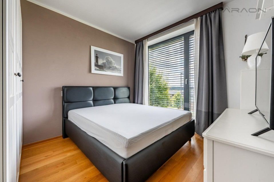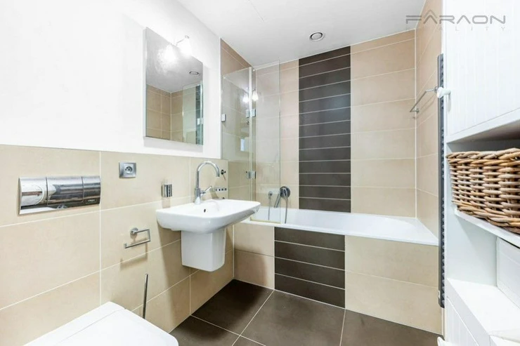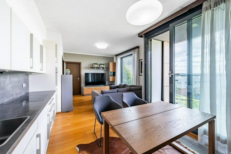 Rent of a modern luxurious, southwest-facing 2-bedroom apartment with a terrace (56m2) with views of the distant surroundings full of greenery with a parking space and a large cellar, situated on the 3rd floor of a modern project of the sought-after and popular Kavčí Hory Residence with underground parking, 24-hour reception with seating, fitness center, security and camera system. Quiet location within close reach of full civic amenities and quick access to the center, in the vicinity of Central Park and the ČT complex, within walking distance of the Pankrác metro station and the Arkády Pankrác shopping center.