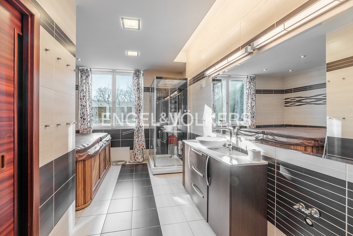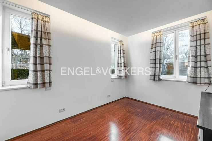 The apartment is located on the first floor of a well-maintained apartment villa with a garden and parking space. A pleasant benefit is the location, which is literally just a few steps from Cibulka Park. The heart of the whole apartment is the bright living room with fully equipped kitchenette and charming ceilings. The bedroom has a built-in audio system and preparation for TV, there is also a passage to a spacious dressing room. The bathroom has a massage shower along with a whirlpool tub. The toilet is separate. The apartment has built-in wardrobes, a utility room, a large garden with a private entrance to the apartment, a covered parking space and a cellar.