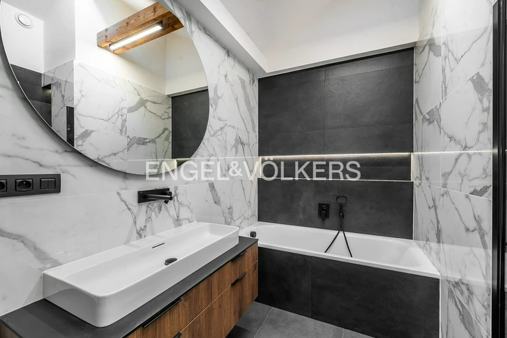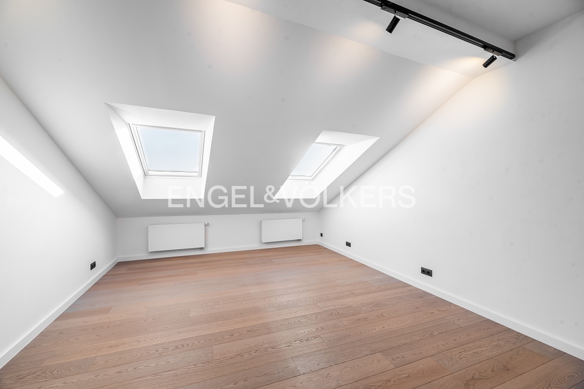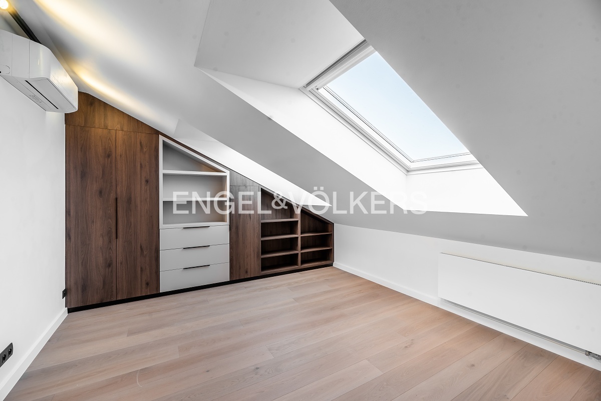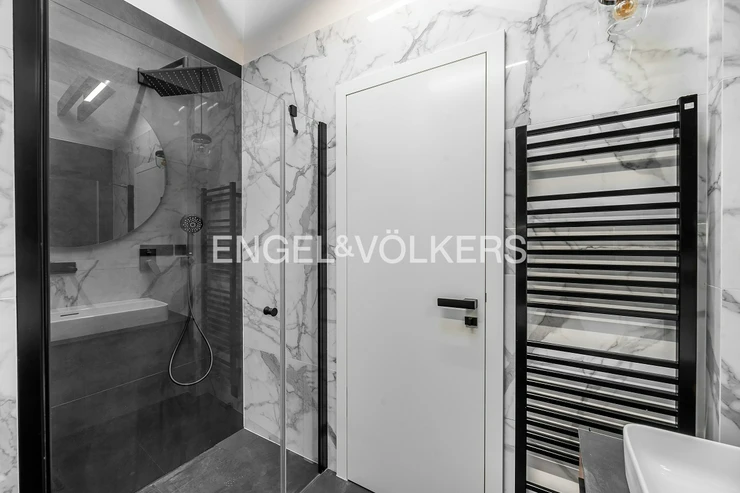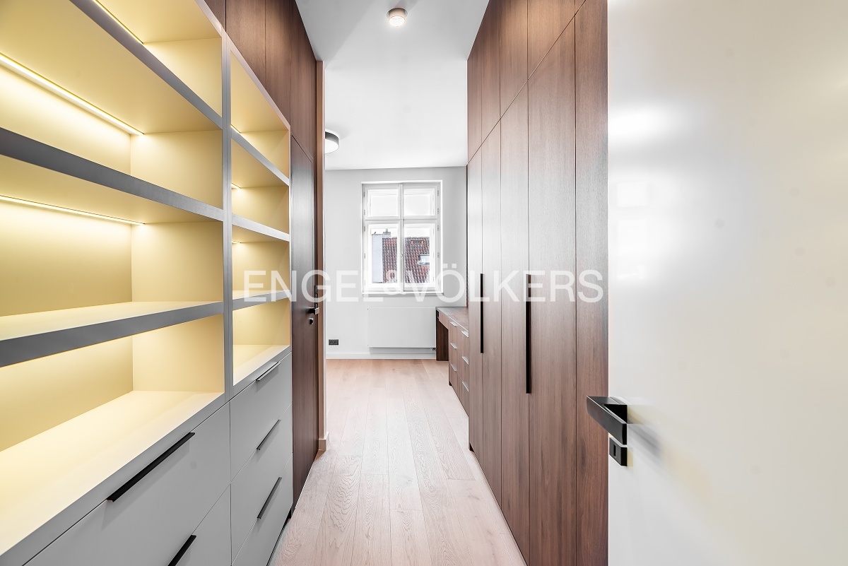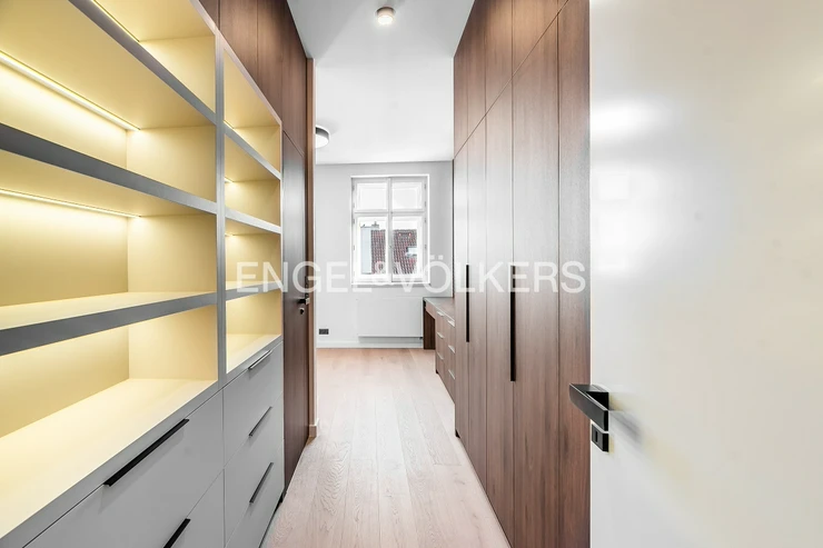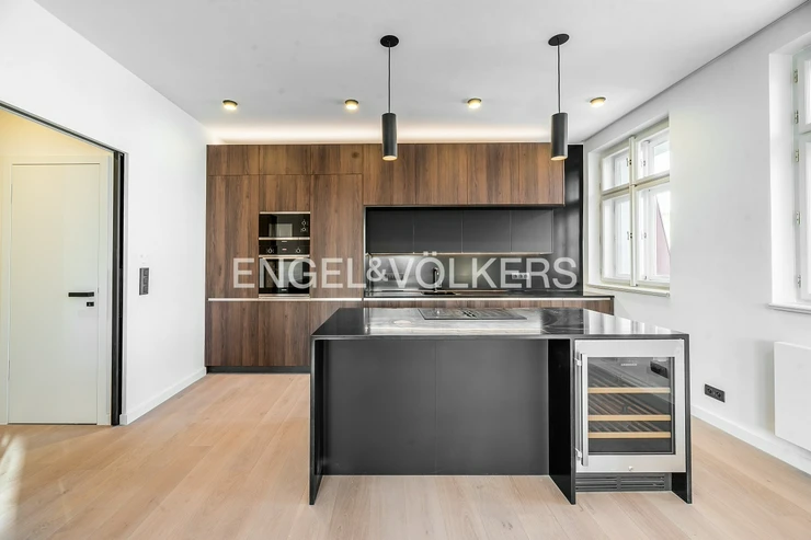 The whole house and apartments are after a superior reconstruction, which took care to preserve the original elements and create a comfortable, modern living. Modern and airy layout of the apartment, where on the entrance floor there is a spacious living room with fireplace, a fully equipped Gemadecor kitchen, a master bedroom with its own dressing room and bathroom, a utility room and a guest toilet. On the upper private floor, there are two separate bedrooms with fitted wardrobes, a spacious bathroom with bath and shower, an extra toilet and a terrace.