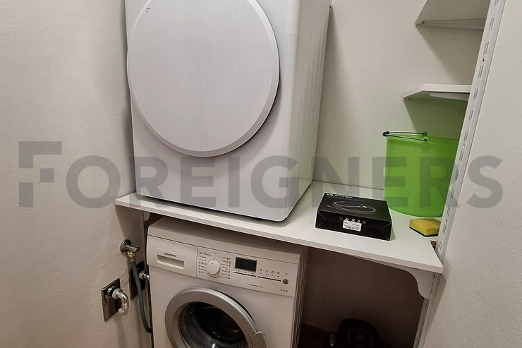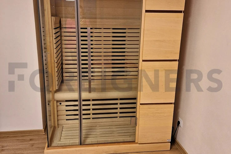 The apartment offers a luxury of a private infrared sauna. After a busy day, indulge in the soothing warmth of the sauna for a truly relaxing experience.
