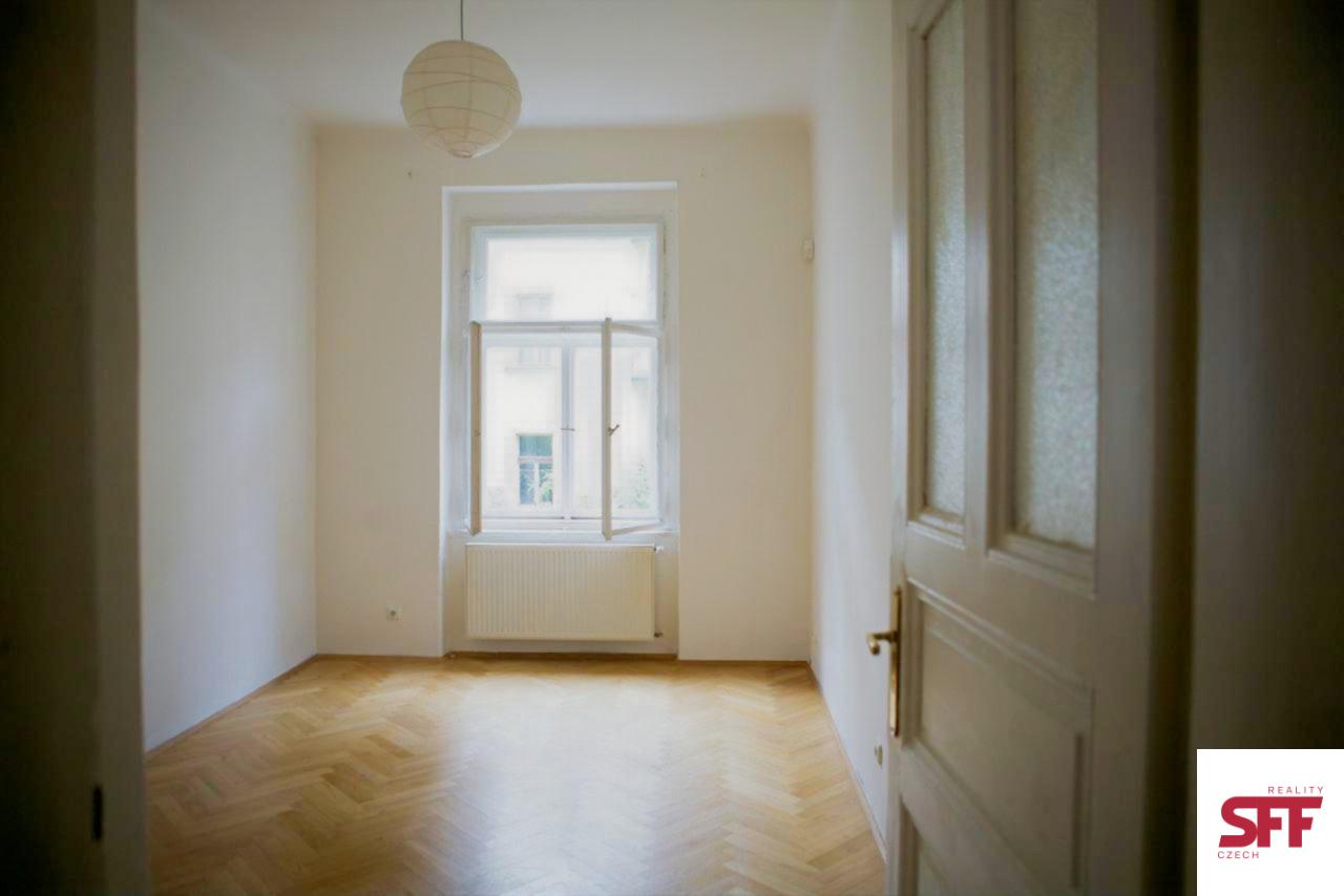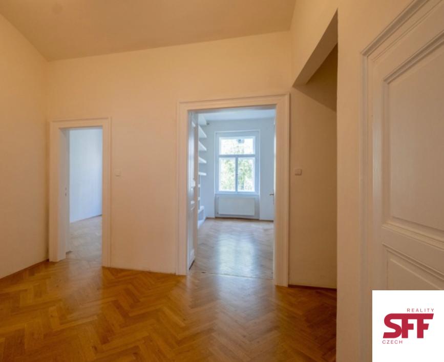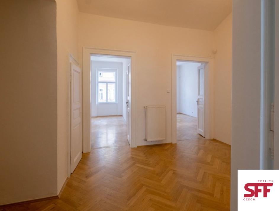 Available Decemeber 8, 2025 . For long term rent we are offering a bright and partially furnished 3+1 apartment with a floor area of 92 m2. The apartment is located on the 2nd floor of a historic building without an elevator, situated in an attractive and quiet street of Pragues Vinohrady district, just a few minutes walk from náměstí Míru.