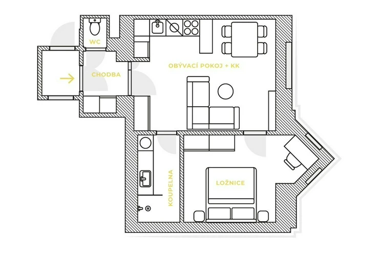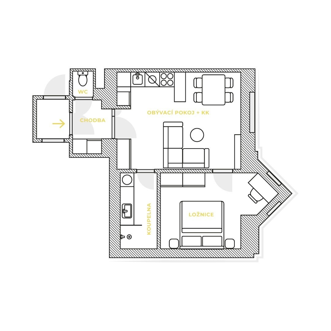 The unit 6 is situated on the 2 floor and offers a 2+kk layout with a total floor area of 46.20 m².