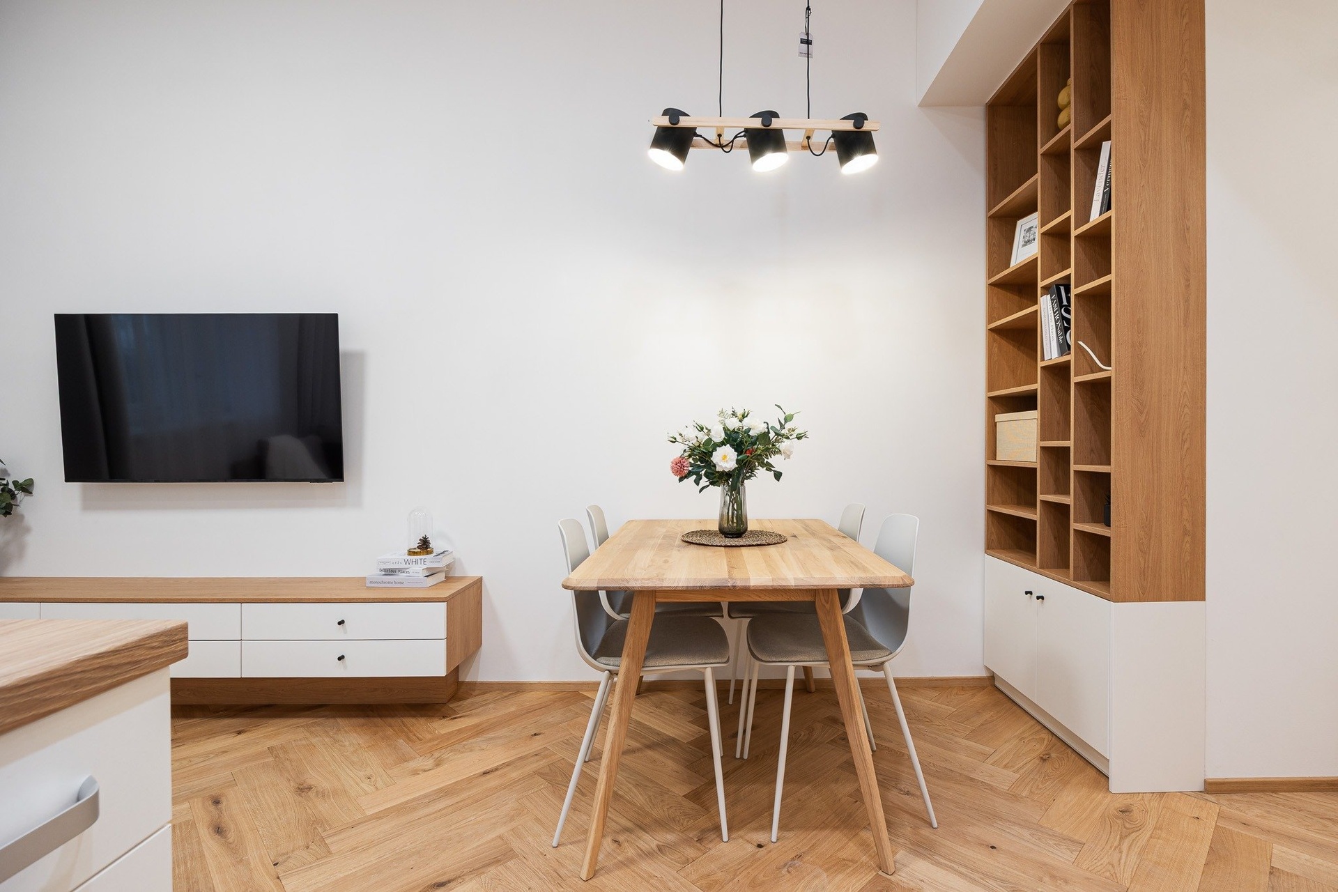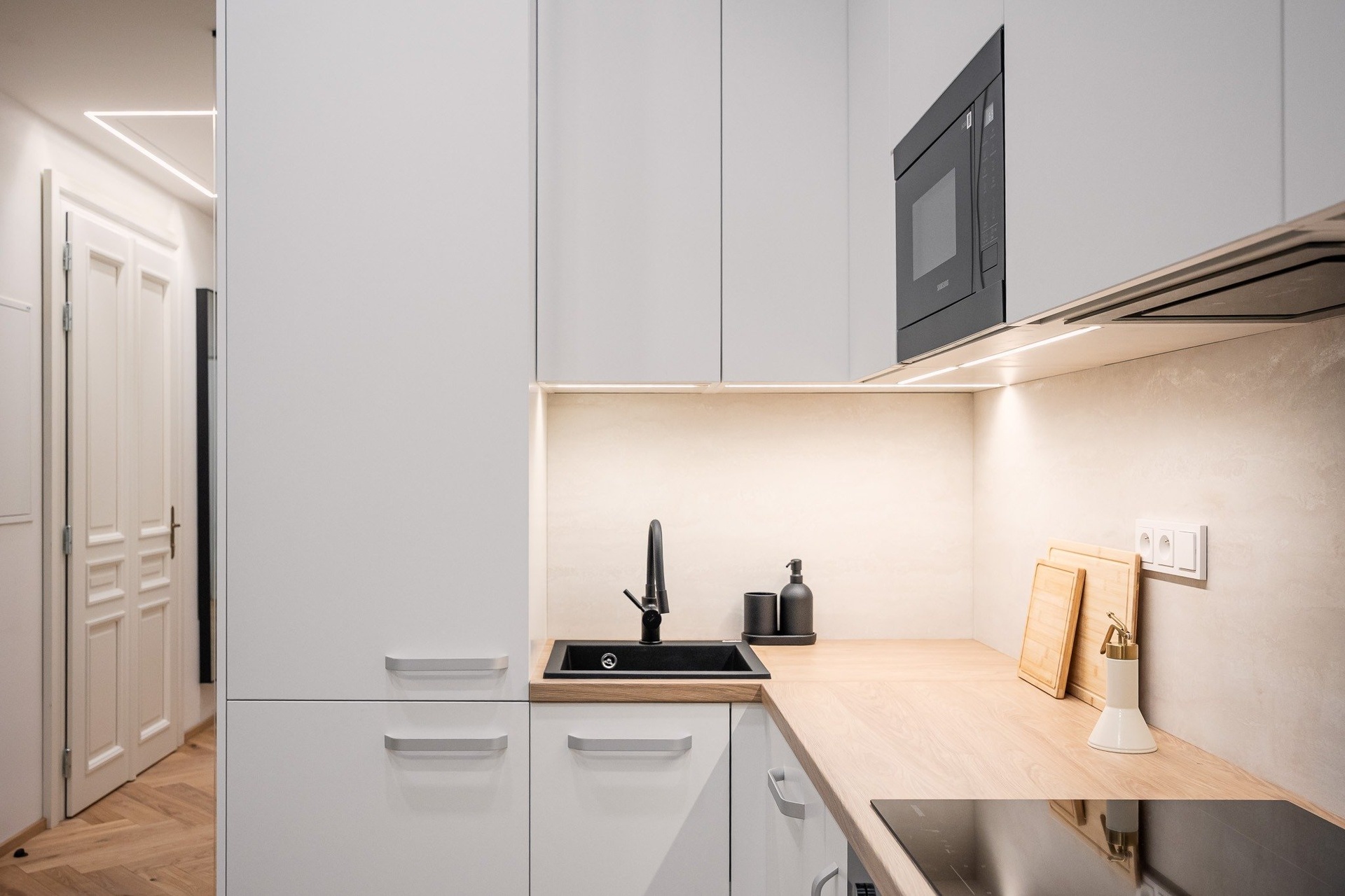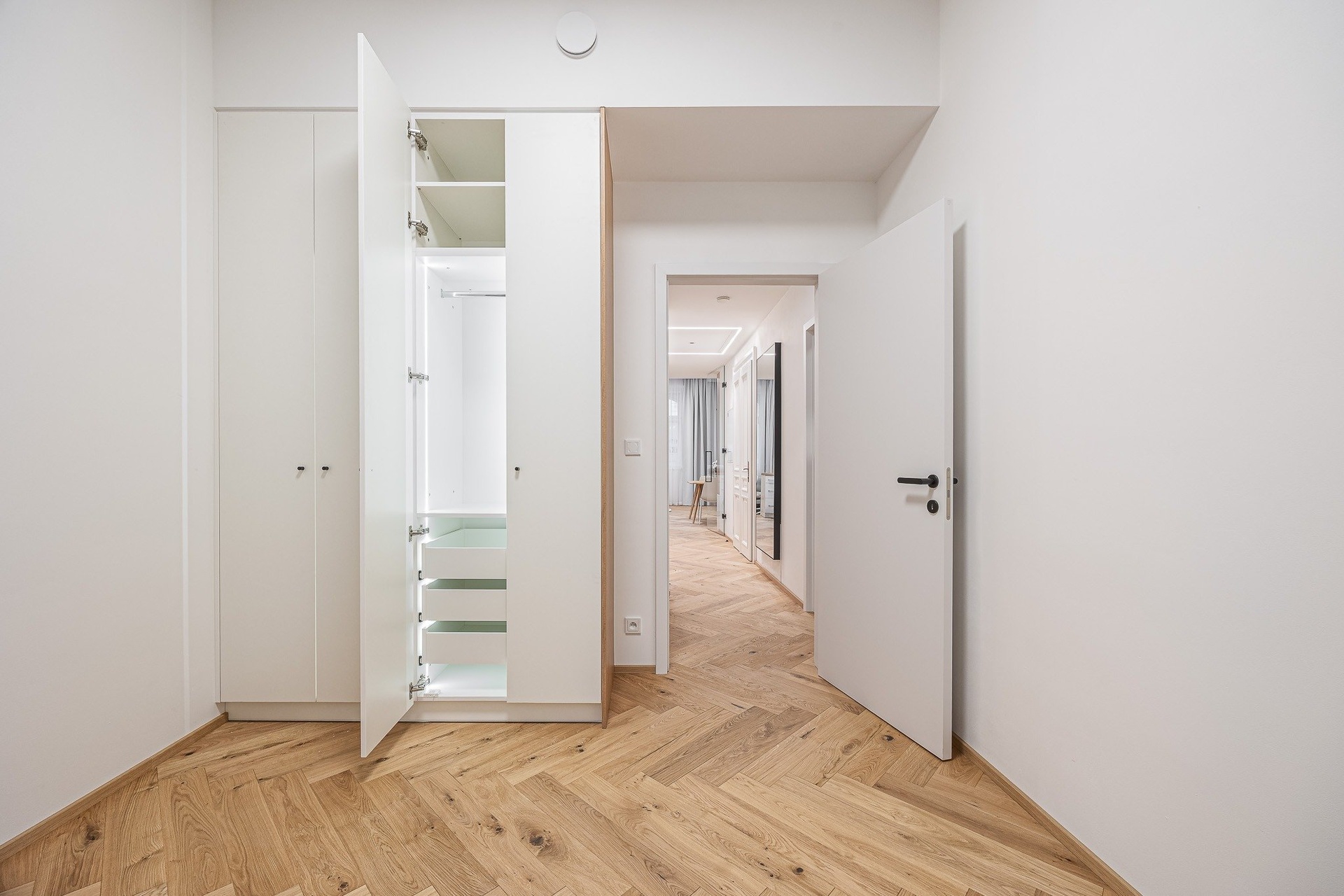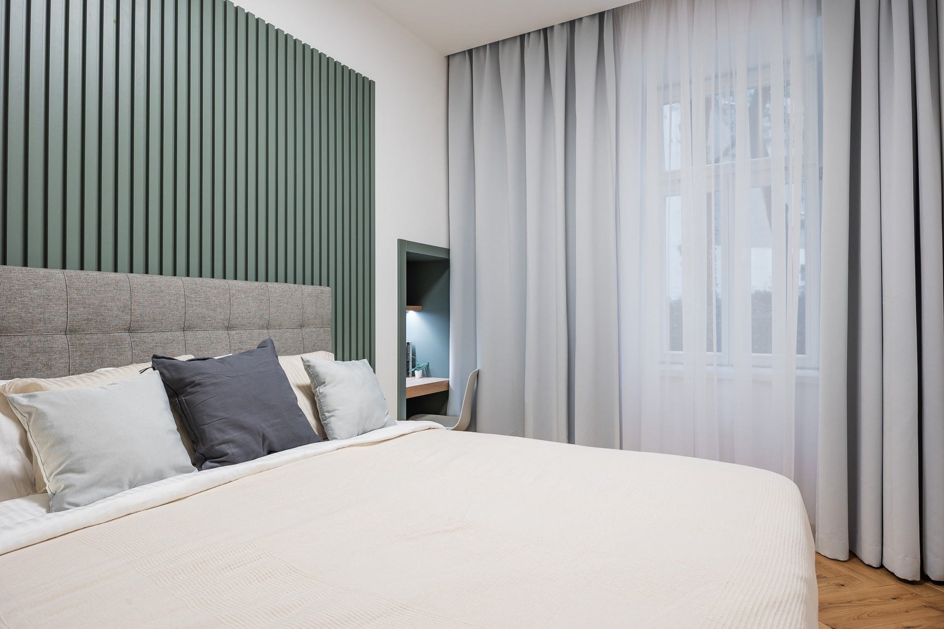 Each apartment includes a high-quality custom kitchen made by Czech craftsmen, stylish furniture, premium appliances, a smart home system, and fast internet.