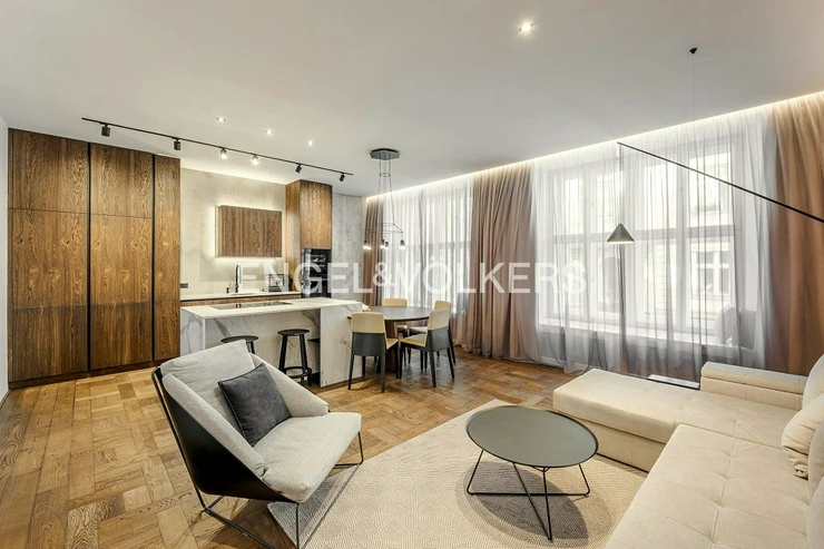 A unique apartment is available for long-term rent, combining the charm of Cubist architecture with the comfort of modern living. The interior, designed by an architect, respects the original character of the 1920s building, with every room thoughtfully arranged down to the smallest detail.