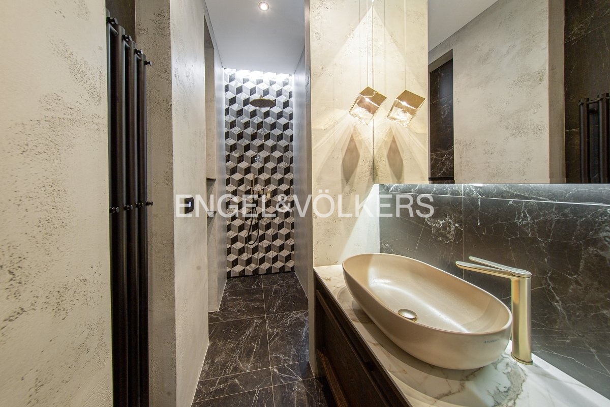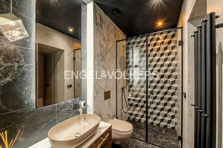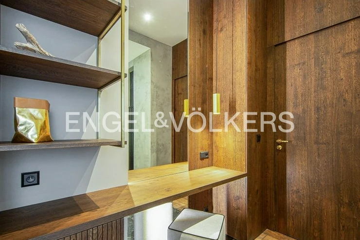 The materials and furnishings used meet the highest standards: solid wooden floors, marble tiles in the bathrooms, epoxy finishes, new windows, a custom-made kitchen with Siemens, AEG, and Faber appliances, and designer sanitary ware by Flaminia. A cellar is also available.