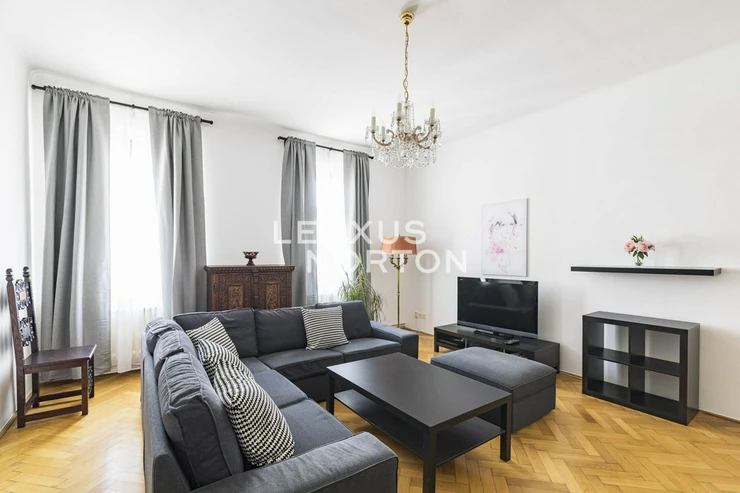 We offer for rent a renovated furnished 3-bedroom apartment of 130 sqm situated on the 4th floor of a renovated building with elevator. The property is located in the historical heart of the metropolis of Prague 1 - Nove Mesto with an excellent transport infrastructure.This furnished apartment for rent offers an entrance hall, spacious living room, separate fully equipped kitchen including dining area, 2 separate bedrooms, study, and bathroom. Garage parking space available for a fee in the Černá Labuť building.The apartment is fully equipped with modern appliances - a ceramic hob, oven, refrigerator, freezer, dishwasher, and washing machine. The bathroom has a massage bathtub and a separate shower.Living in the very heart of Prague, near Wenceslas Square, offers a large number of shops, restaurants and the possibility of cultural activities in the immediate vicinity. Within walking distance there are shopping center Palladium, Havelské tržiště, hospitals, pharmacies, supermarkets, shops, restaurants, cafes, playgrounds. The location offers a dense network of public transport lines (buses, trams, train station, 3 metro stations). There are kindergartens, primary schools, secondary schools, colleges and Park Lane International School nearby. For leisure activities you can use the fitness, bike park, tennis courts, theaters or go to Letenske sady, Park Lannova, Desfourska zahrada or go to Naplavka. By car, you can reach the motorway in 8 minutes and Vaclav Havel Airport in 24 minutes. The monthly advances including utilities are set at the amount of CZK 8,000.The inquiring client agrees to pay a commission of 1 month's rent plus VAT.If you are unable to view the property in person, we also offer real-time video tour from the comfort of your home via Messenger, WhatsApp and other communication platforms.