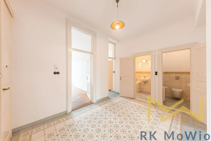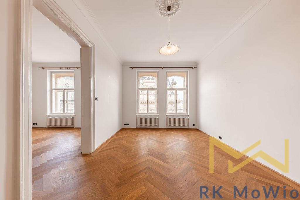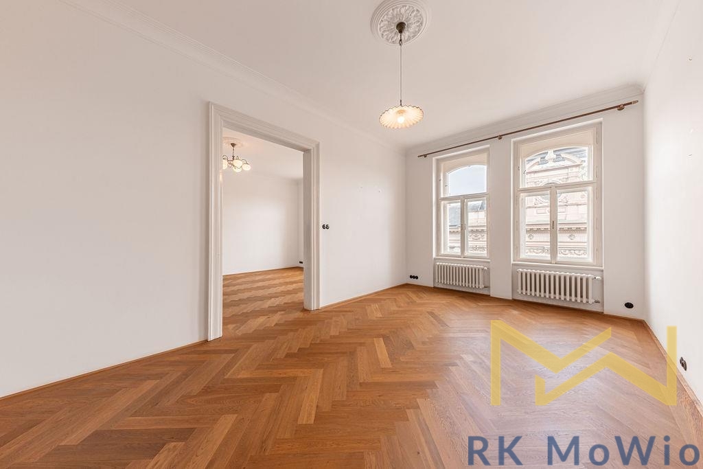 For rent, we offer a bright, fully renovated, unfurnished apartment with preserved original architectural elements and high ceilings, consisting of 2 bedrooms with a total area of 98.91 square meters, including a balcony. The apartment is located on the 3rd floor (4th floor above ground) of a quality-renovated historic building without an elevator, situated on Na Smetance Street in Praha 2 - Vinohrady.