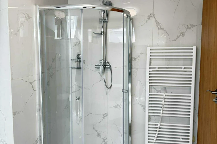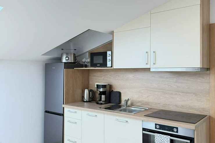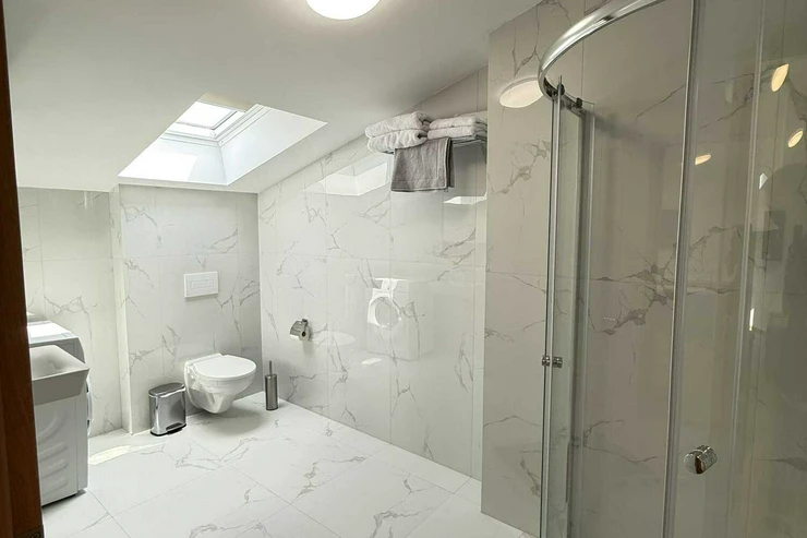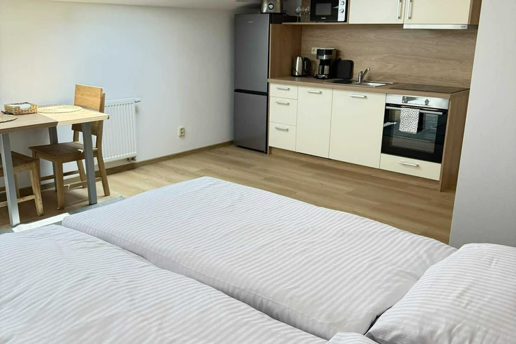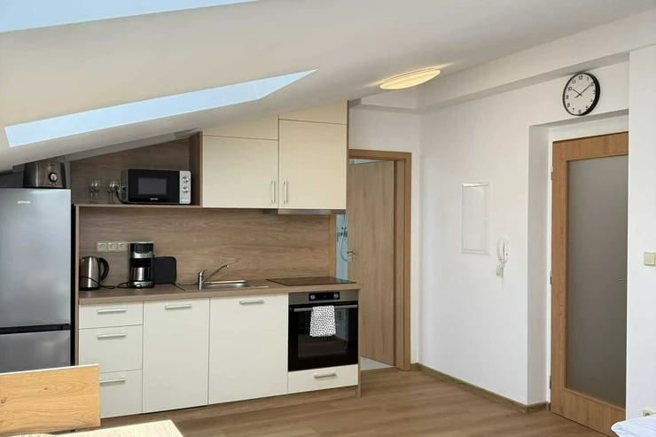 This modern and spacious studio is an ideal choice for couples or families seeking accommodation with an emphasis on comfort, tranquility, and functionality. Guests have access to a private bathroom with a shower, a hairdryer, and complimentary toiletries. The kitchen is fully equipped, including a stovetop, refrigerator, dishwasher, and kitchenware, allowing you to prepare meals at any time of the day. The studio also features a washing machine, a flat-screen TV, an electric kettle, a coffee machine, a private entrance, and soundproof walls for an undisturbed stay. A comfortable king-size bed is provided, ensuring maximum comfort for rest and relaxation.