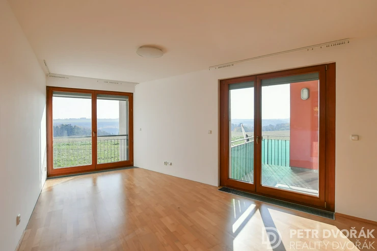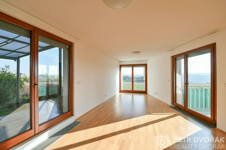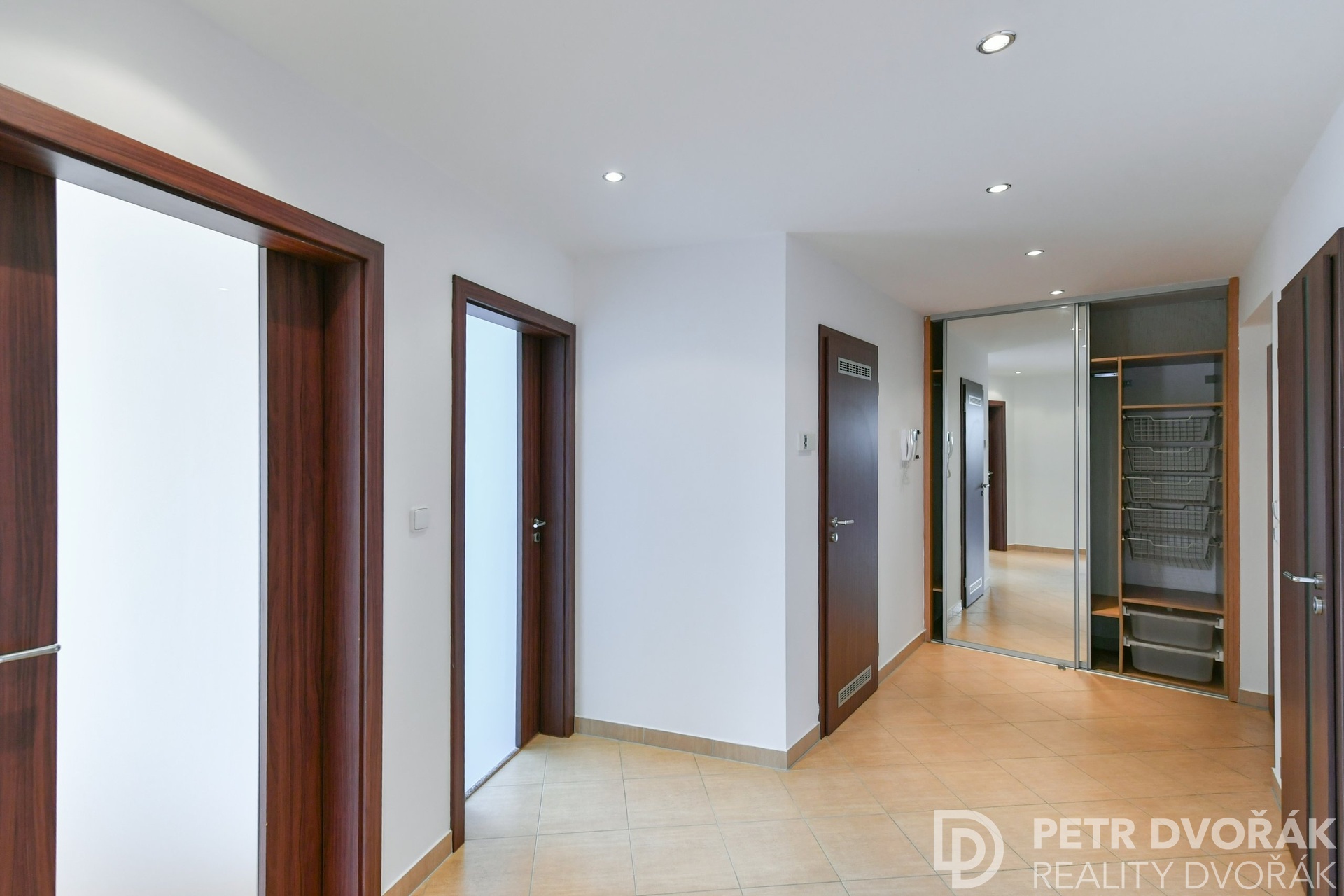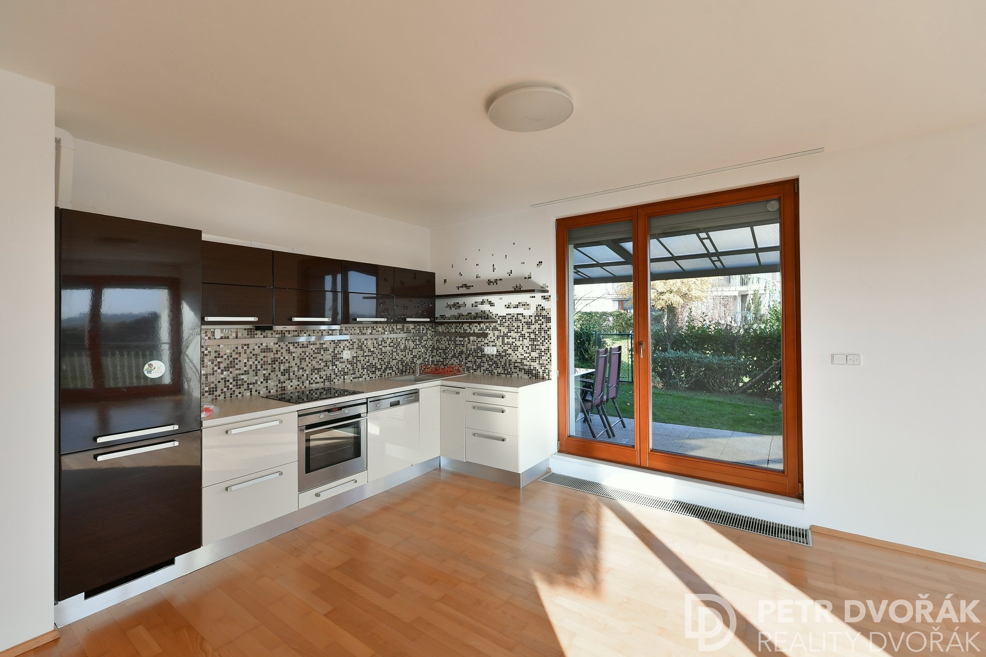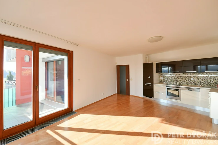 Bright apartment with a balcony, garden terrace, and two garage parking spaces, located on the first floor of a modern residential project on Nad Dalejským údolím Street in a quiet residential area of Prague 5 – Stodůlky.