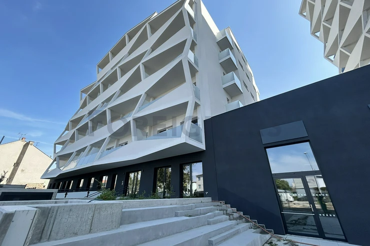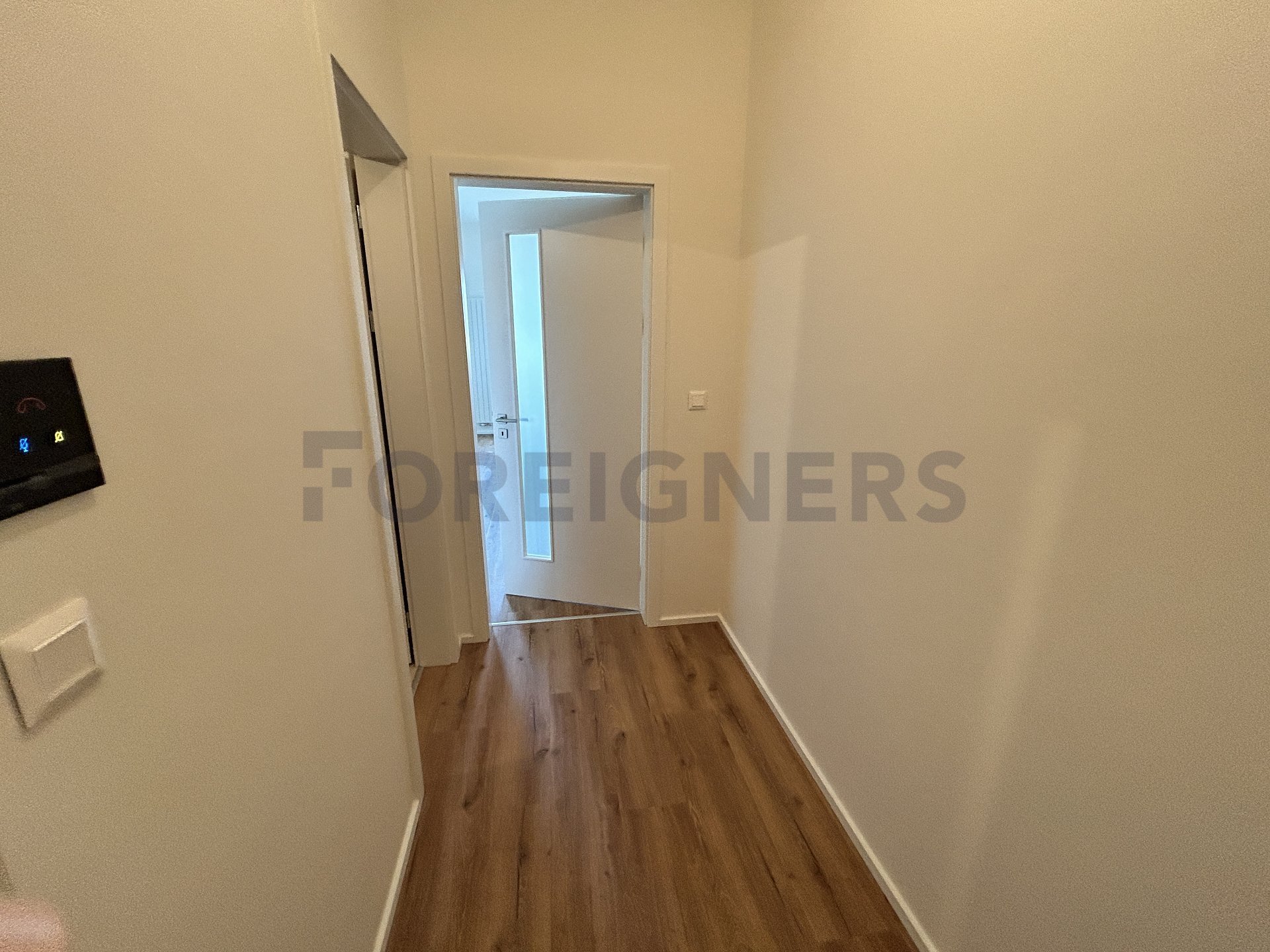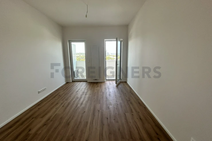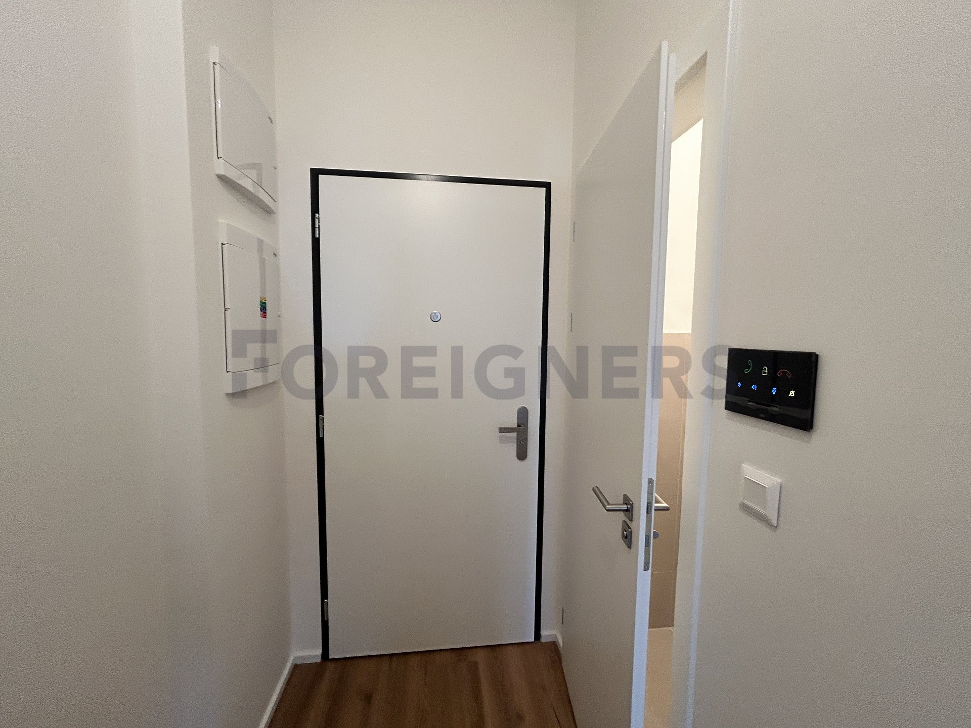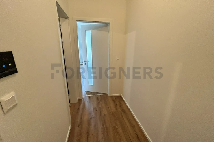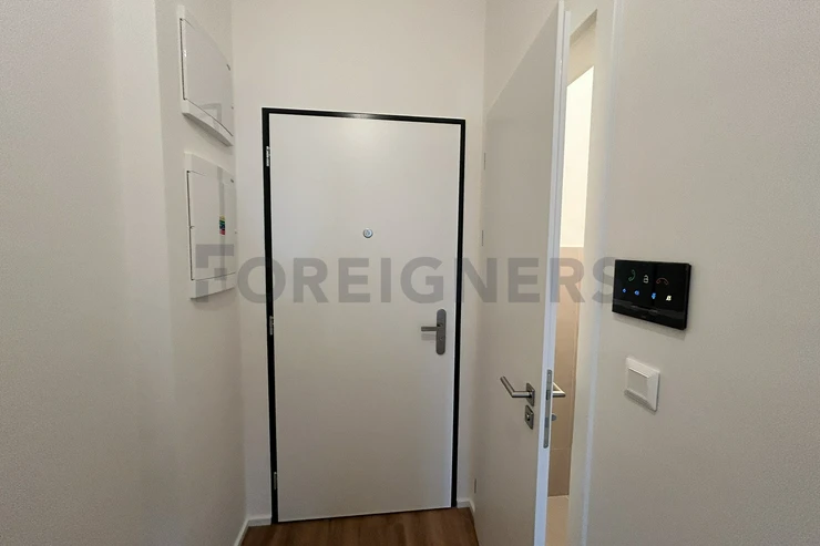 New residential building with elevator, balcony, high-quality furniture and built-in appliances, modern bathroom. Quiet living with all services and transport within walking distance.