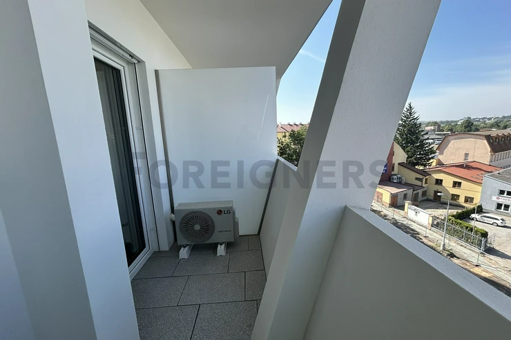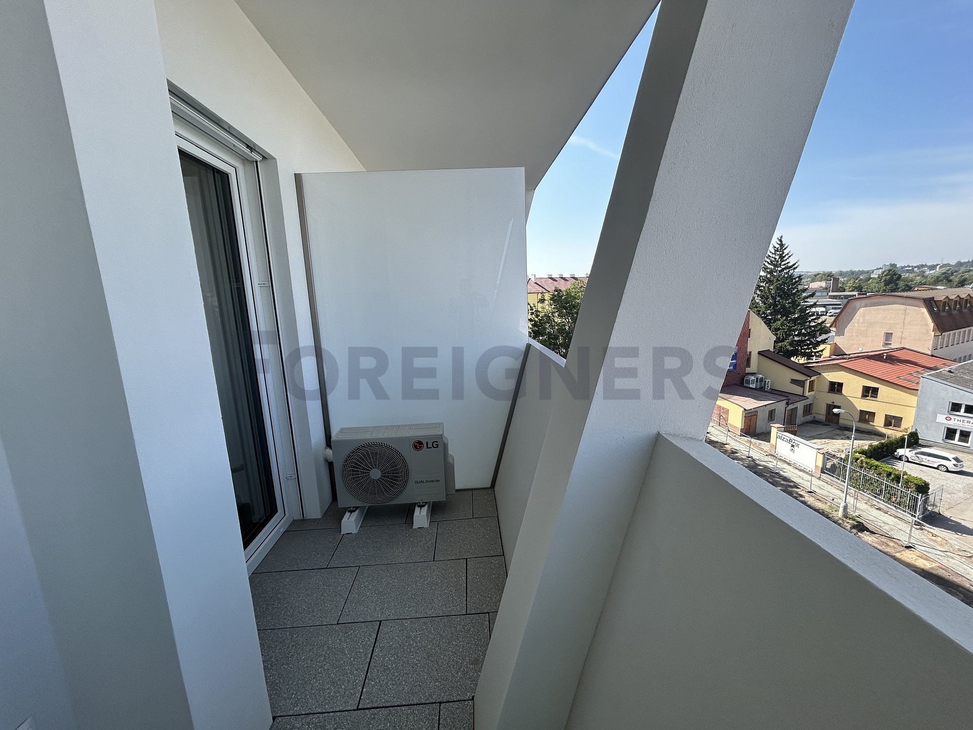 The apartment is currently being furnished you can see ilustrated photo of apartment. Modern and stylish studio/apartment in the exclusive MERIDIEM project — a brand-new multifunctional complex in Trnitá, composed of high-rise and low-rise buildings. Located between Svatopetrská and Komárovská streets, just minutes from Brno’s historic centre. Furnished, with balcony and full appliances.