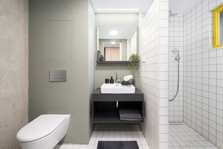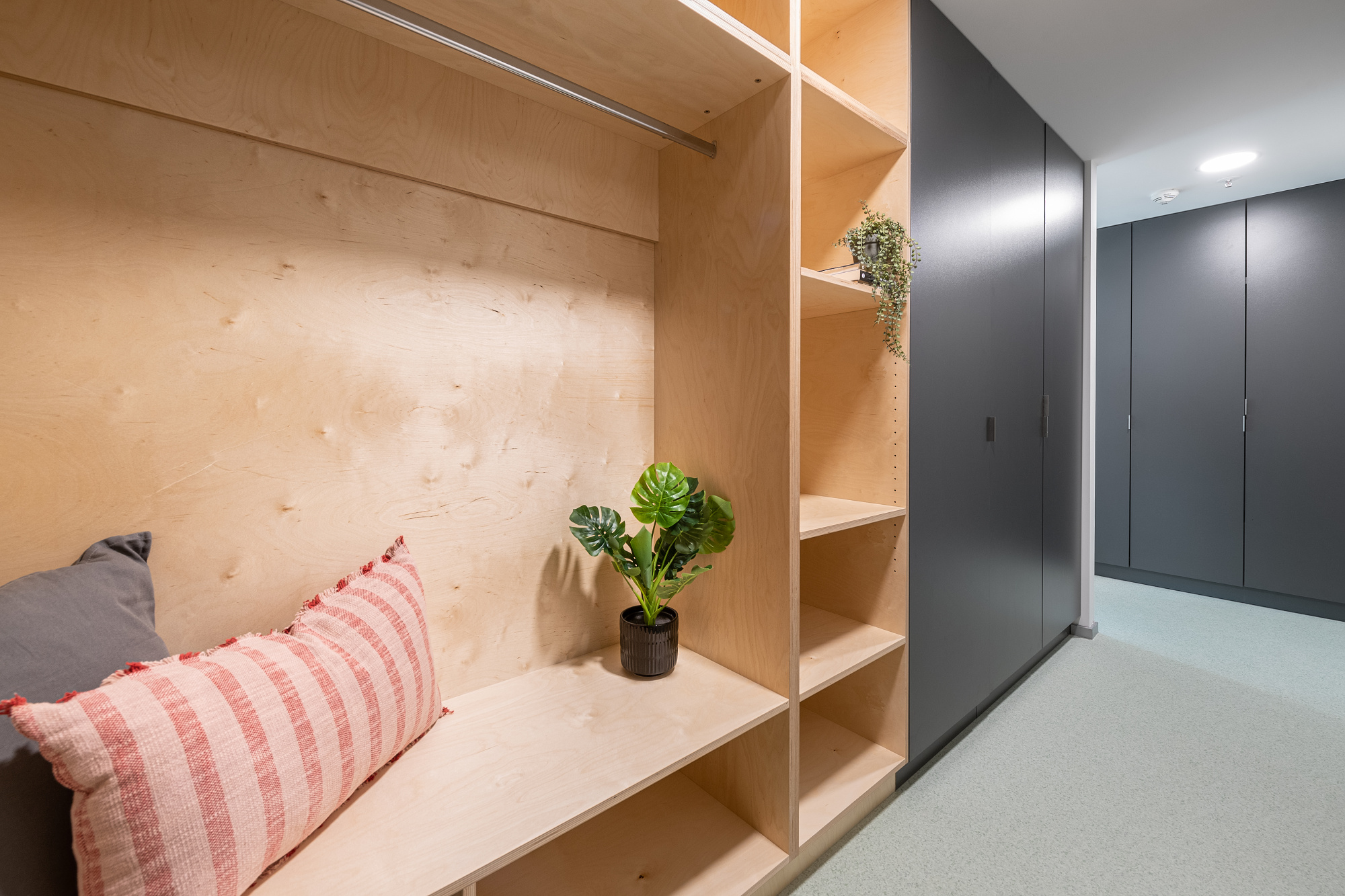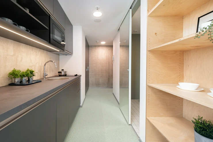 At Domeq, you can also use the terrace on the 6th and 13th floors, shared study rooms, and a common lobby (pool table, PlayStation, piano, TV). You can pay extra for a gym membership or parking space in the garage.