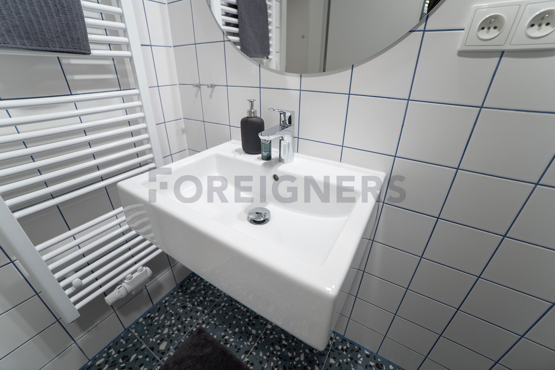 The apartment is located on the 2nd floor in a new building with a total area of 31,7 m2 including a balcony. Vinyl floors with underfloor heating are laid in the rooms and ceramic tiles in the bathroom.