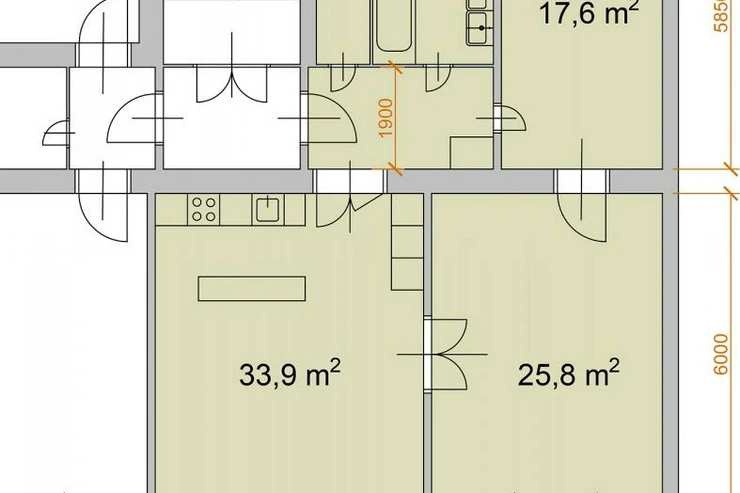 Two bedrooms, the larger bedroom is 25.8m2.