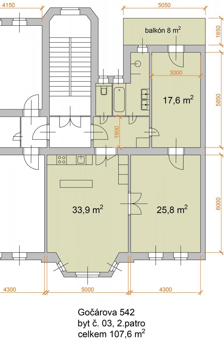 Beautiful 3+kk apartment approx. 100m2 + balcony 8m2 on the 2nd floor of a very well-maintained house without an elevator in Gočárova třída Street, Hradec Králové.