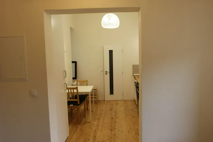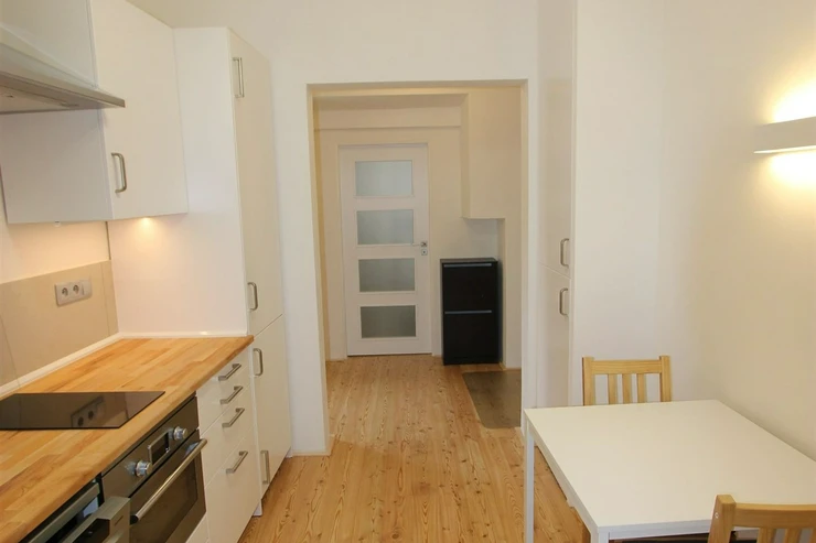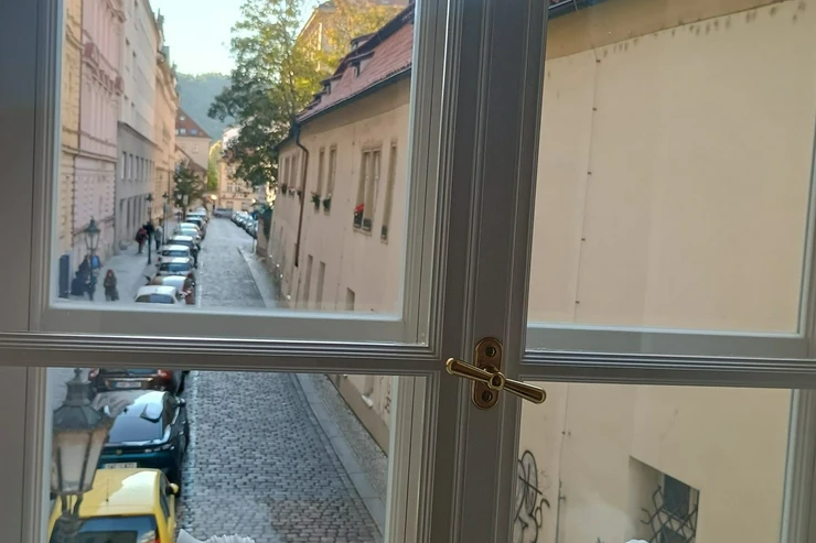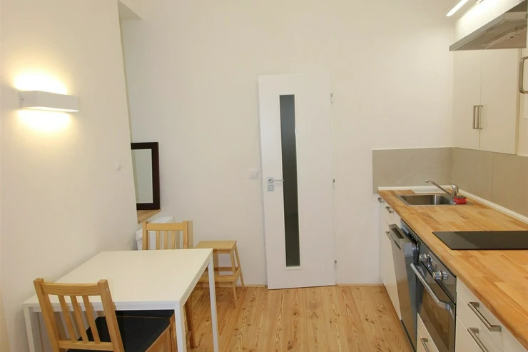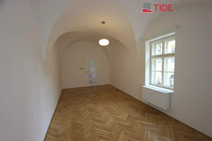 We offer for rent a very cozy and quiet 1+1 apartment (40 m2) after a complete reconstruction in a beautiful building right on Betlémské náměstí. Flat can be used as an office. The apartment is located on the 1st floor without an elevator and offers views of the square, Betlémská Street, and the towering Petřín Hill (impressive sunsets are visible from the window when the weather is nice). The apartment consists of a large room with vaulted ceilings, a small entrance hallway with a window, a fully equipped kitchen with all appliances (dishwasher, oven, refrigerator), and a bathroom featuring a modern shower, washing machine, and a partially separated toilet. Heating and hot water in the apartment are provided by a new Vaillant condensing gas boiler. The building is listed as an immovable cultural monument, as it originally consisted of two Gothic houses built in the 14th century, which were connected in the first half of the 17th century. The house has undergone a complete reconstruction in recent years. There is a communal balcony in front of the apartment. The staircase to the apartments is separated from the common areas by a bars controlled by an electronic chip, as are the large wooden doors to the house. The apartment is not suitable for Airbnb operators. The owner prefers only long-term rentals. All civic amenities (shops, restaurants) are within walking distance, including the metro station (Národní třída) and tram connections. Rent 24,000 + utilities and energy reserves 4,000 CZK/month. Available immediately.