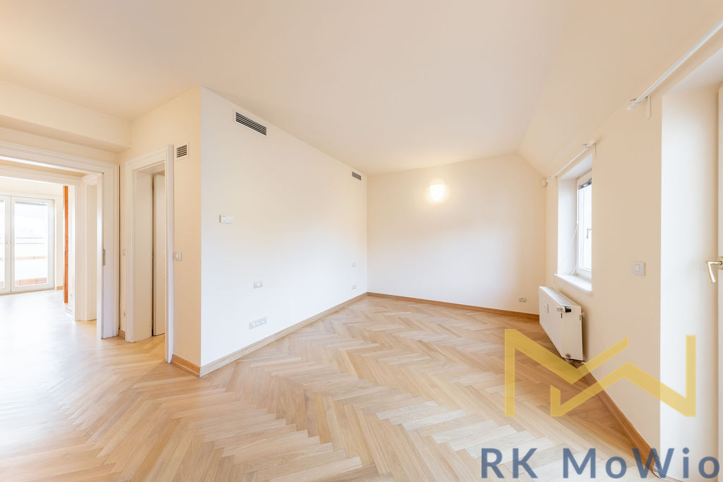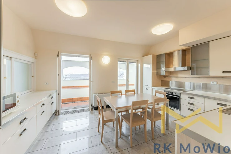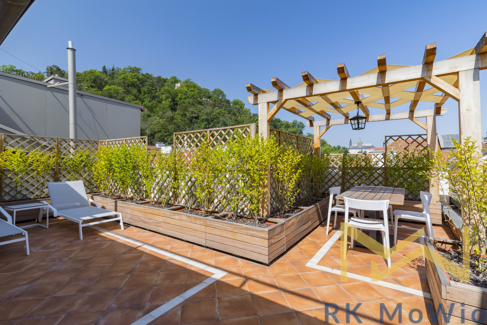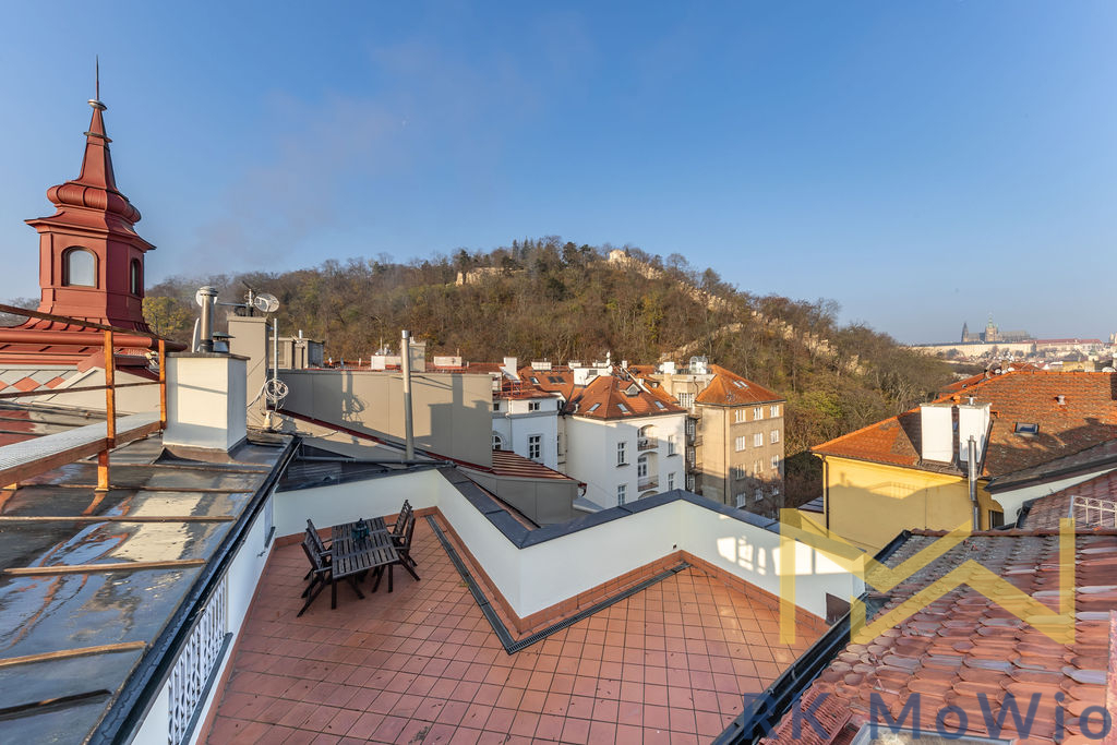We offer for rent a partially furnished high-standard duplex 4-bedroom apartment with a floor area of 235 sqm, terraces totaling 50 sqm, and a cellar of 6 sqm. The apartment is located on the 4th and 5th floors (5th and 6th above ground) of a building with an elevator, daytime reception, and maintenance staff, on Újezd Street, Prague 5 – Malá Strana.