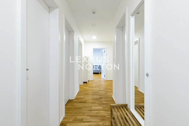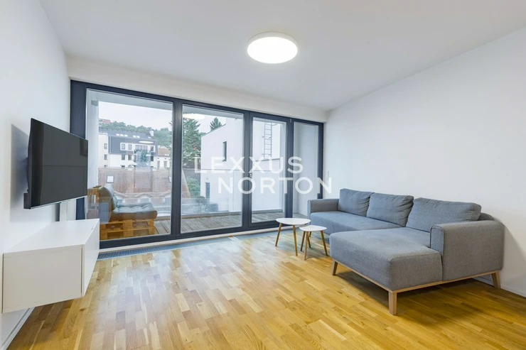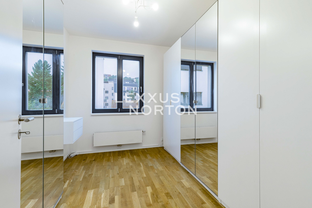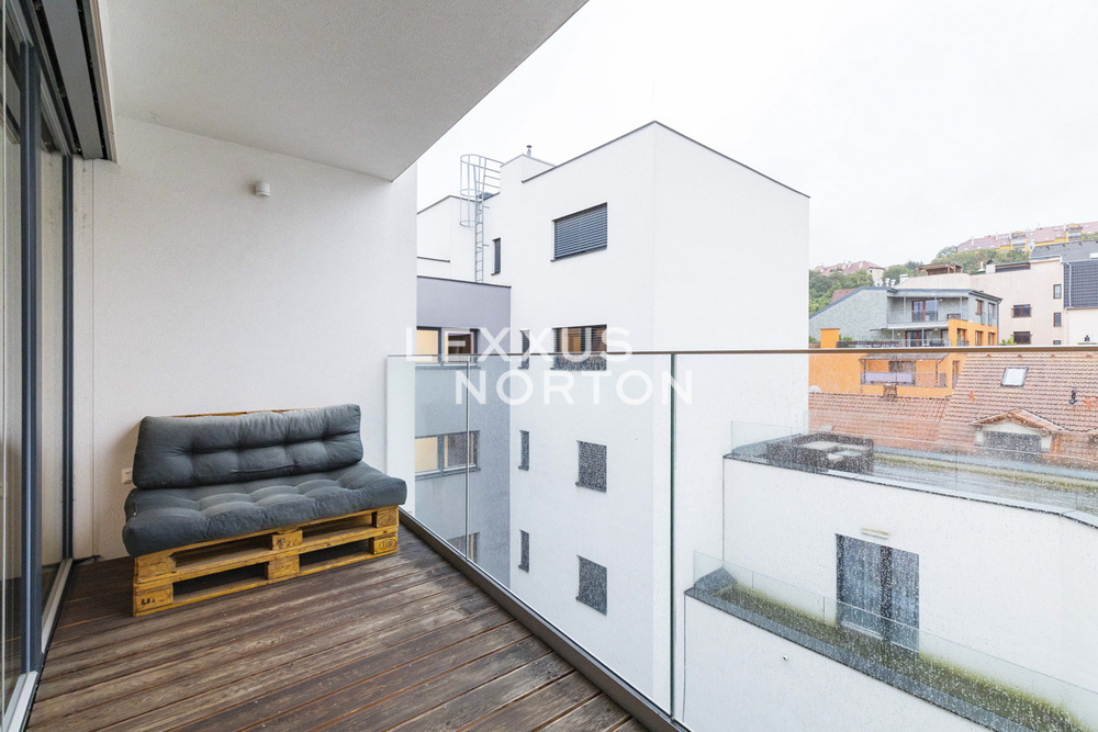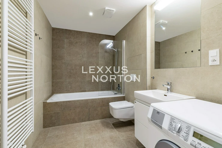 This modern apartment with a balcony and loggia is located on the 5th floor of a new building from 2020 with an elevator, in the popular residential district of Prague 5 - Kosire. The location offers quiet living, full civic amenities, and quick connections to the city center. The apartment offers an entrance hall, a spacious living room with a fully equipped kitchenette and dining area, with direct access to the balcony and loggia. There are two bedrooms, one of which has its own dressing room and direct access to the balcony, as well as a study, bathroom, and separate toilet. The apartment includes a cellar and a garage parking space in the rent, with the possibility of renting an additional parking space for CZK 2,000 per month.The apartment is partially furnished and includes built-in wardrobes, an intercom, a sofa set, a TV, dining furniture, a bed, a washing machine and a dryer. The bathroom is equipped with a bathtub and a toilet. The kitchenette is fully equipped and has a refrigerator, freezer, microwave, induction hob, oven and dishwasher.A quiet residential neighborhood surrounded by greenery with villas and smaller apartment buildings. Excellent transport connections – Andel metro station 7 minutes away by tram, quick access to the highway and convenient travel to the airport. Complete civic amenities in the vicinity – schools (including international ones), shops, services, and sports facilities. The nearby Kosire-Motol, Vidoule, Skalka, and Cibulka parks are attractive for leisure activities.The amount of billable monthly advances is CZK 9,000 + electricity.The inquiring client agrees to pay a commission of 1 month's rent plus VAT.If you are unable to view the property in person, we also offer a real-time video tour from the comfort of your home via Messenger, WhatsApp, and other communication platforms.