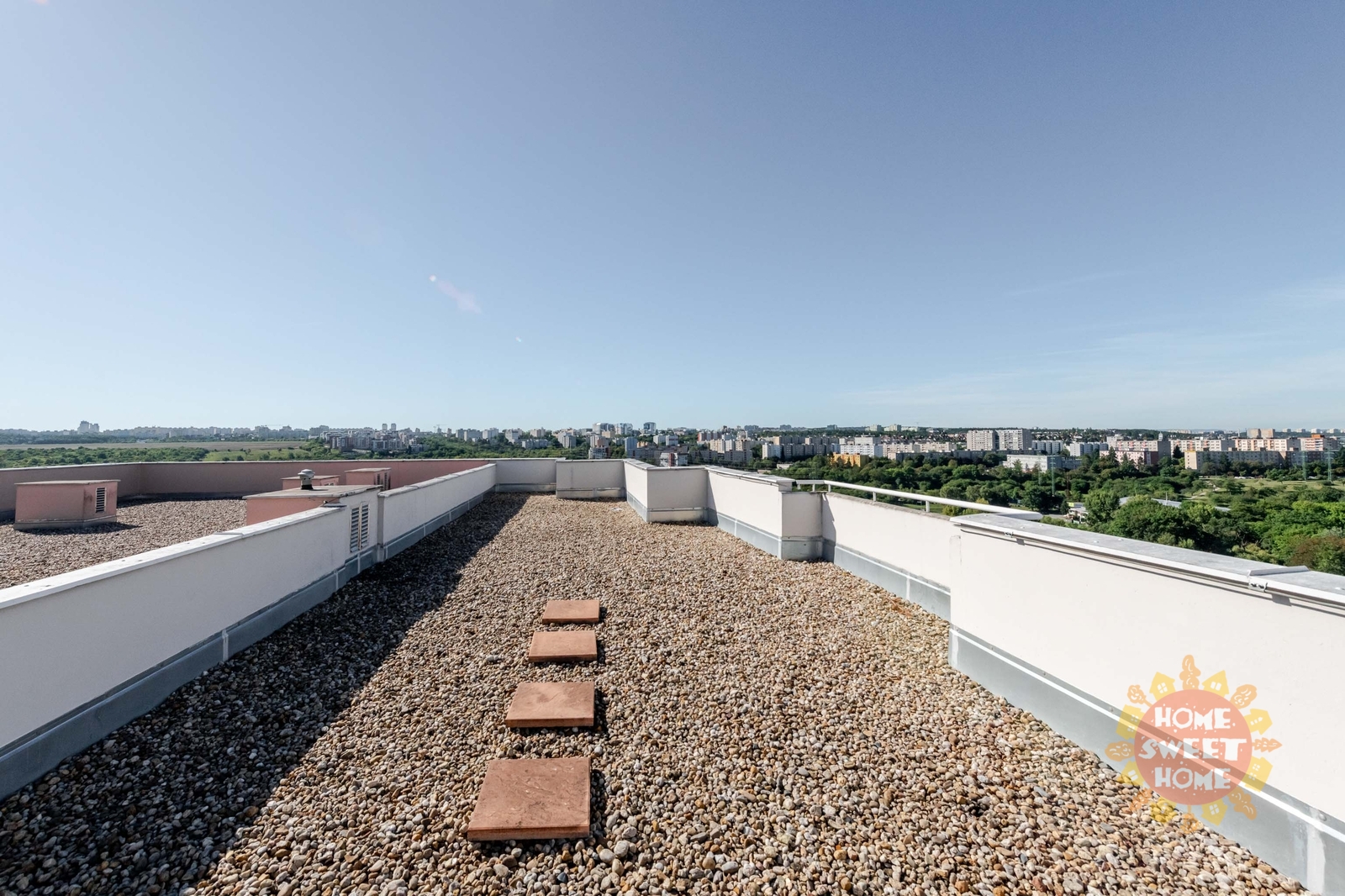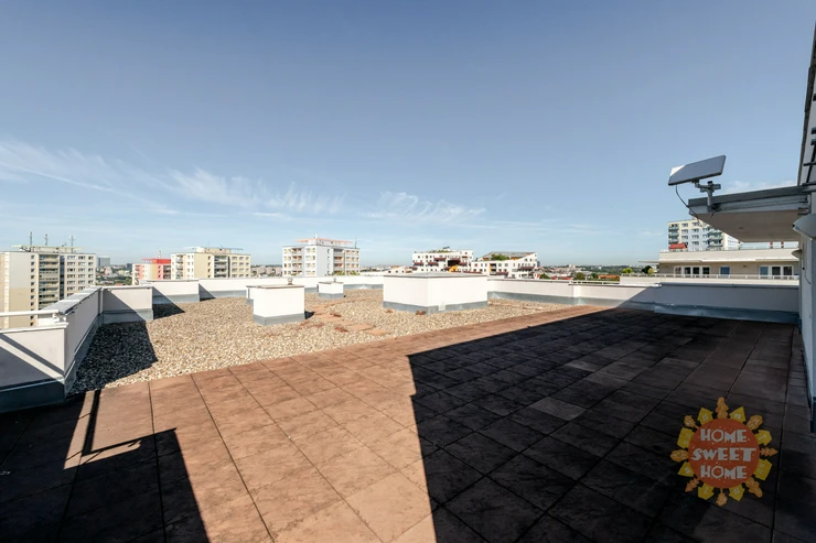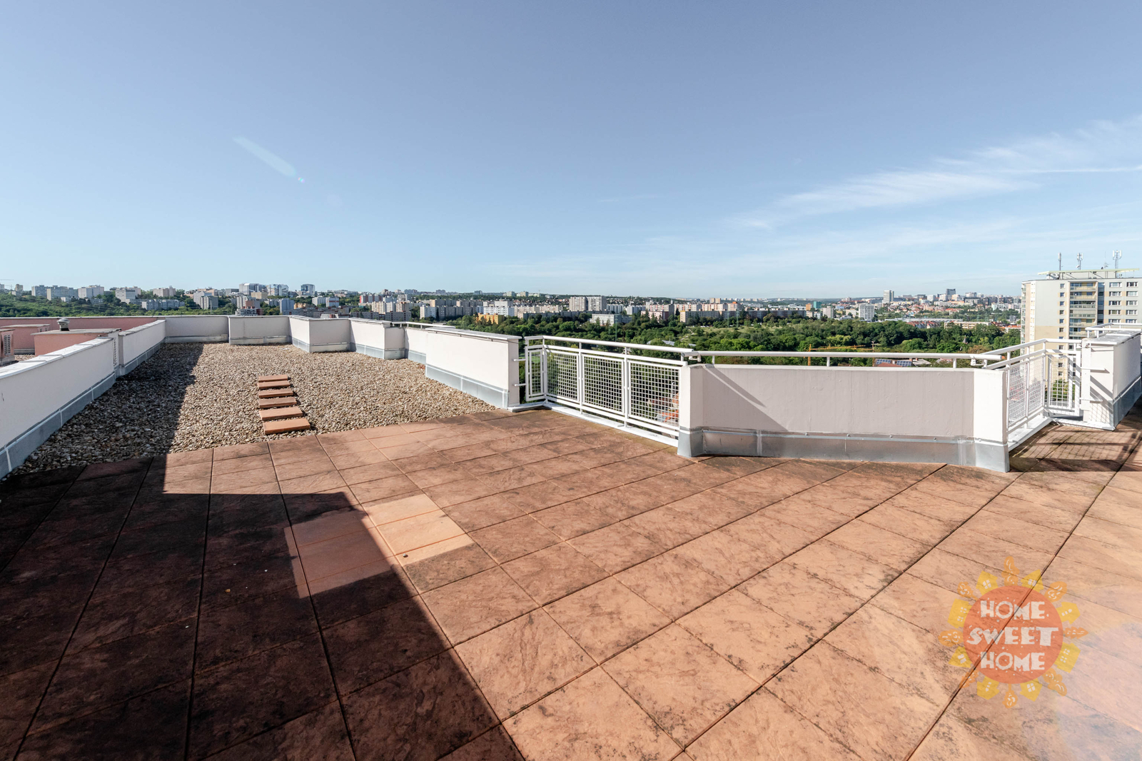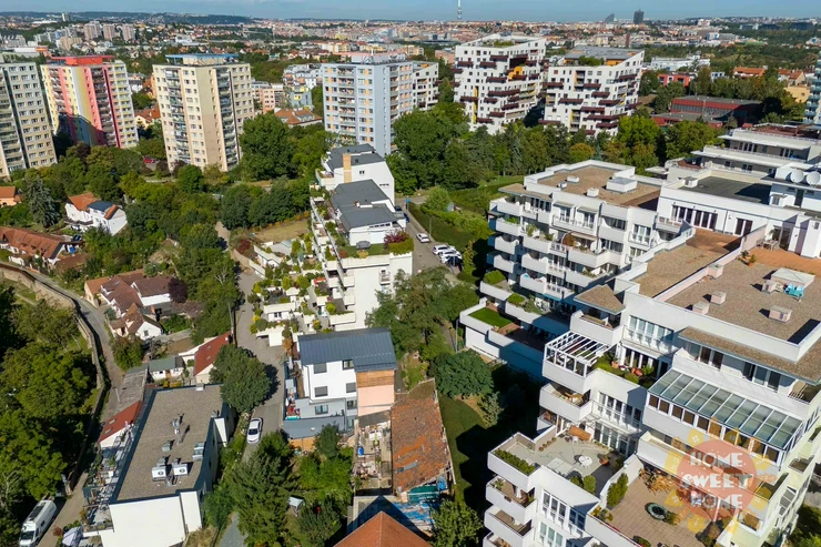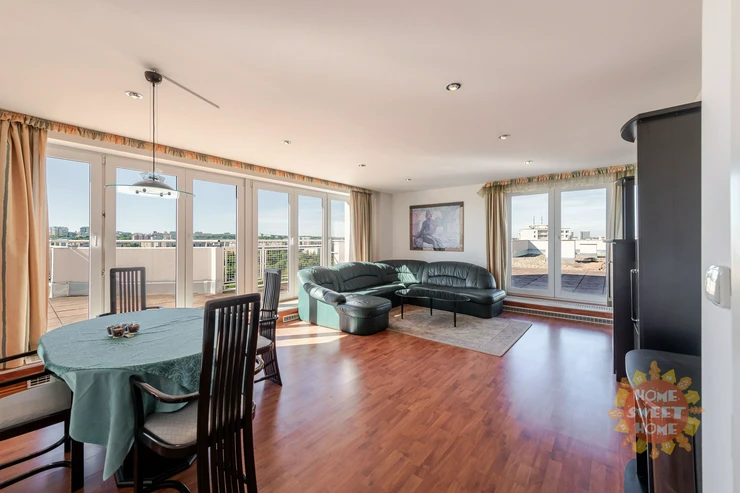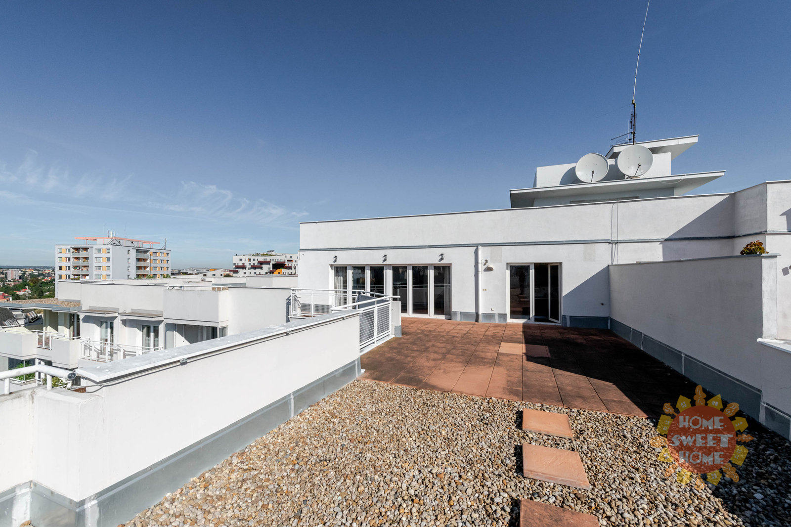 We offer for rent a partially furnished 4+1 apartment with an area of 150 m² with a generous private terrace (150 m²) on the roof of the building, which offers beautiful views of the surrounding area of Záběhlice. The apartment is located on the 6th floor of a new building with an elevator on Hyacintová Street. Security is provided by daily security guards, creating a safe and peaceful atmosphere for families.